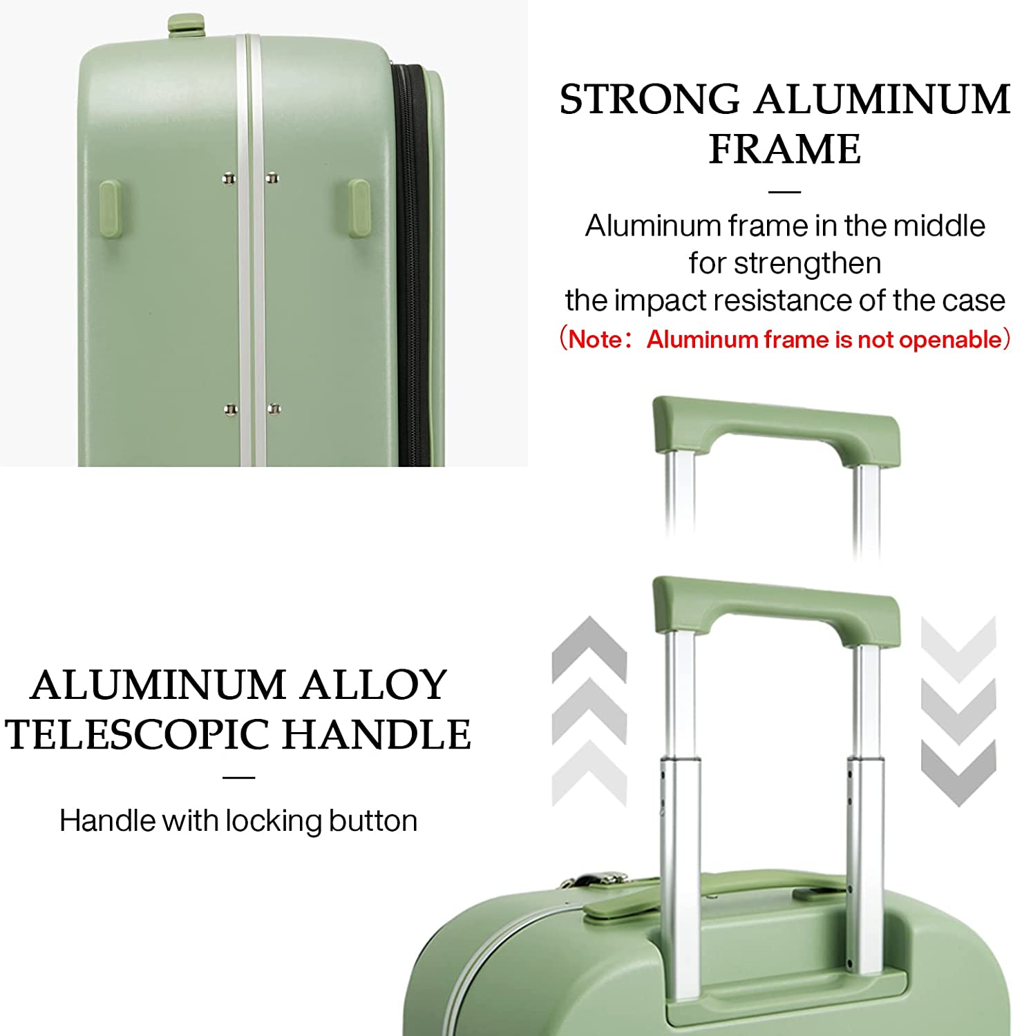 【DURABLE TRAVEL SUITCASE】Benefits from German Bayer PC material to prevent easily cracking or breaking, and Aluminum frame in the middle strengthen the impact resistance of the case, makes it more solid. (Aluminum frame is not openable)
