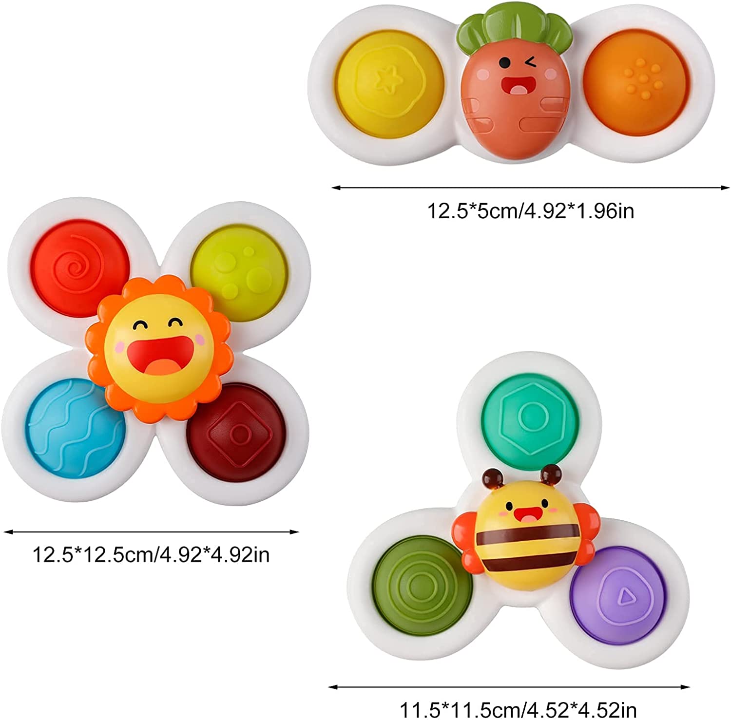 Outgeek Suction Cup Spinner Toys: 3PCS Kids Spinning Top Toys Baby Dimple Toy Sensory Toys Fidget Spinners Suction Cup Babies Bath Toys Gift Toys for Toddlers (Second Edition) (White)