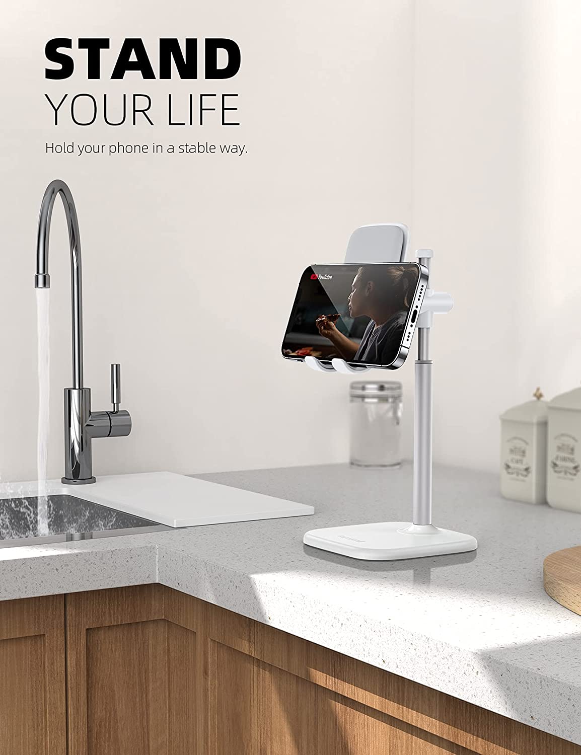 【Height Angle Adjustable】The Upgraded Lamicall phone stand can adjust the height from 159-205mm (6.25-8.07 inches). Easily adjust it to the height as you like by sliding the bar smoothly. 60 degrees angle adjustment provides a comfortable angle as you willing.