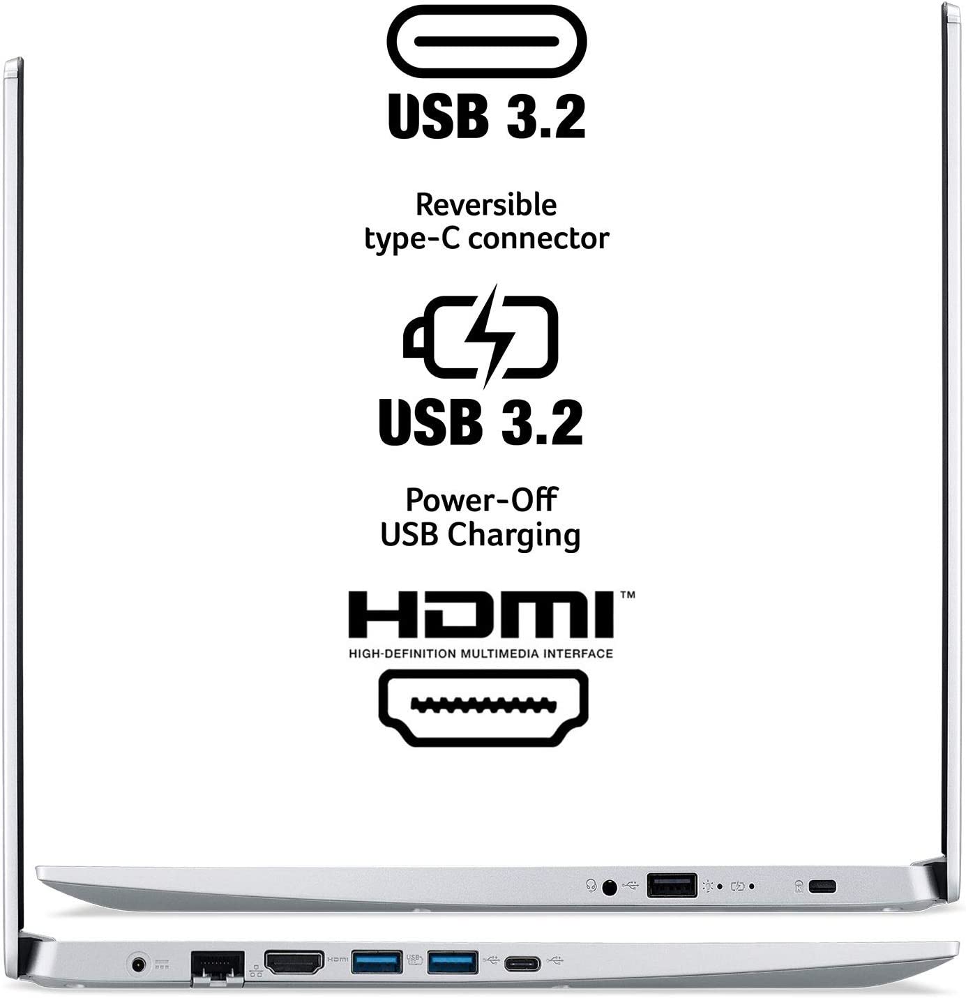 Acer Aspire 5 A515-44-R41B comes with these high level specs AMD Ryzen 5 4500U Hexa-Core Mobile Processor with Radeon Graphics (2.3GHz and with Precision Boost up to 4.0GHz), Windows 10 Home, 15.6" Full HD (1920 x 1080) Widescreen LED-backlit IPS Display, 8GB DDR4 Memory, 256GB NVMe SSD, TrueHarmony Gen 2 Technology, Two Built-in Stereo Speakers, Acer Purified.Voice Technology with Two Built-in Microphones, 802.11ac WiFi 5 (Dual-Band 2.4GHz and 5GHz), 10/100/1000 Gigabit Ethernet LAN (RJ-45 port), Bluetooth 5.0, Back-lit Keyboard, HD Webcam (1280 x 720), 1 - USB 3.2 (Type-C) Gen 1 port (up to 5 Gbps), 2 - USB 3.2 Gen 1 Port (one with Power-off Charging), 1 - USB 2.0 Port, 1 - HDMI Port with HDCP support, Lithium-Ion Battery Up to 10-hours Battery Life, 4.19 lbs 1.9 kg (system unit only) (NX.HW4AA.003).