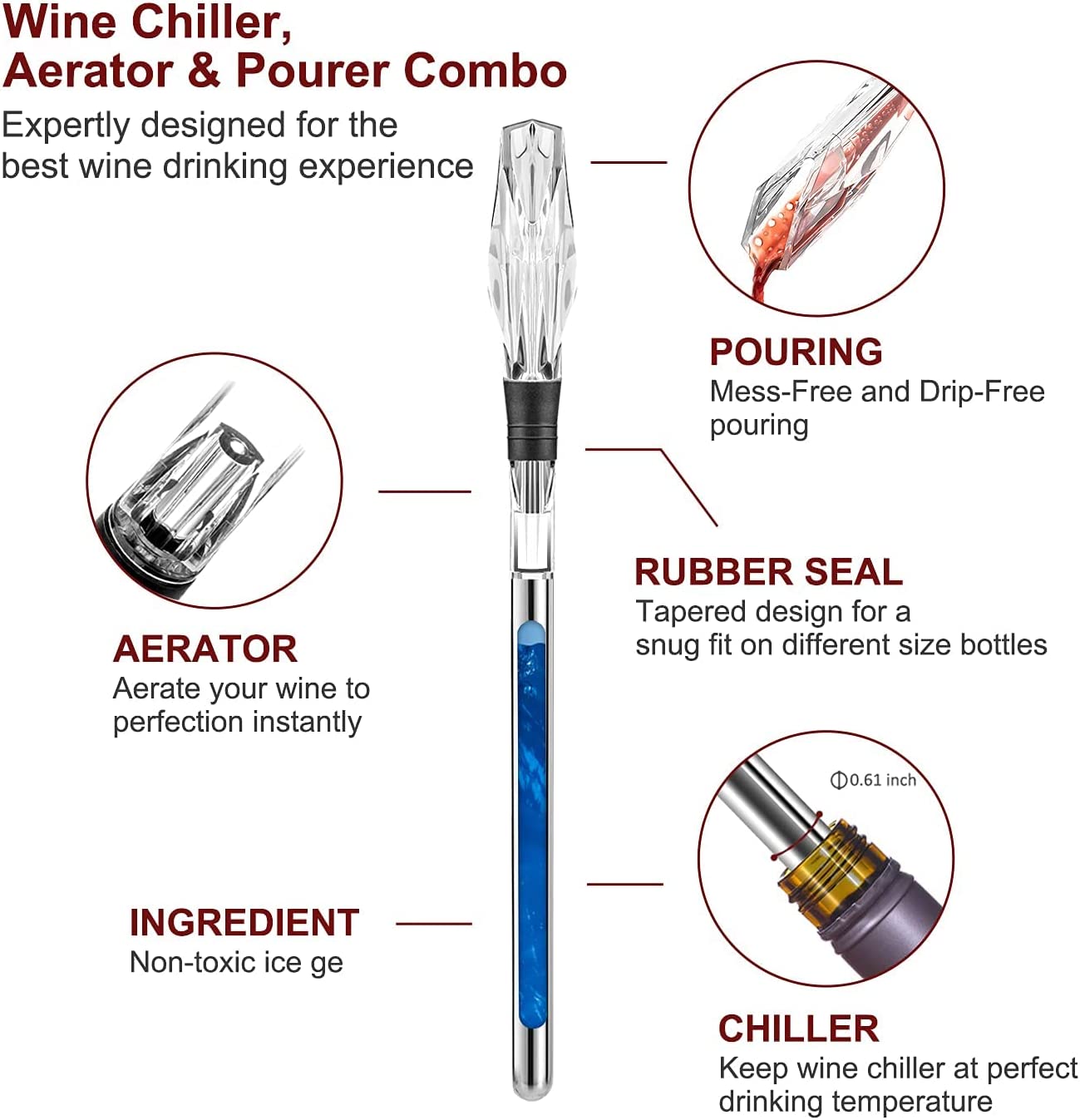 ? PERFECT WINE ACCESSORIES - IEOVO wine chiller stick combines cooling, aerating and pouring in one, which will keep your pre-cooled wine at optimum drinking temperatur. The built-in aerator will mix the optimal amount of oxygen during pouring to maximally enhance wine flavor. Sleek design to fit all bottle sizes.