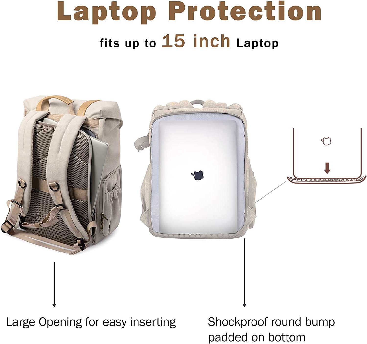 BAGSMART Camera Backpack, DSLR Camera Bag, Waterproof Camera Bag Backpack for Photographers, Fit up to 15" Laptop with Rain Cover and Tripod Holder, Ivory White
