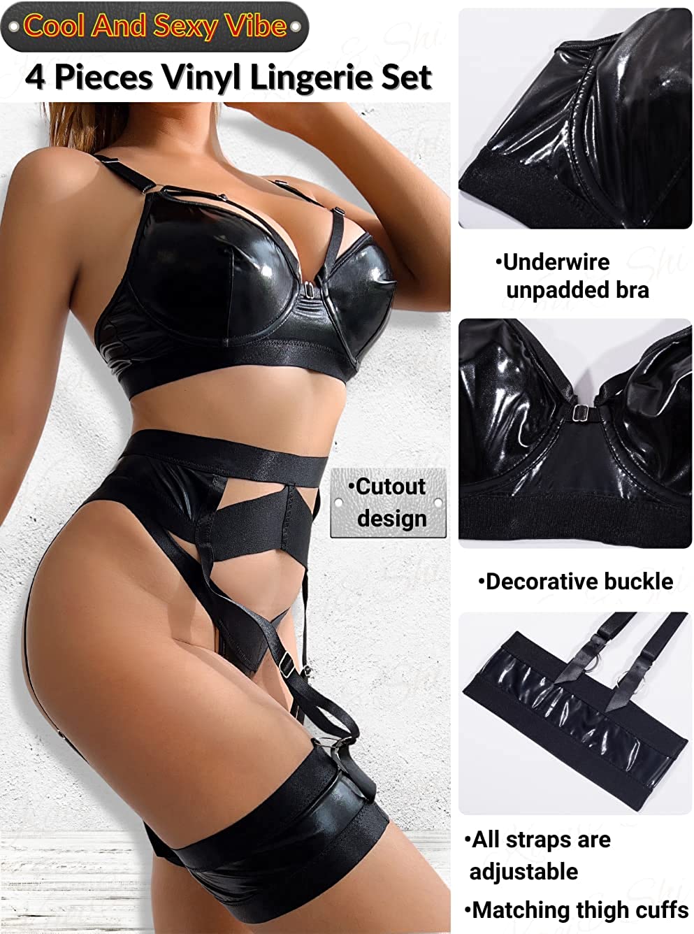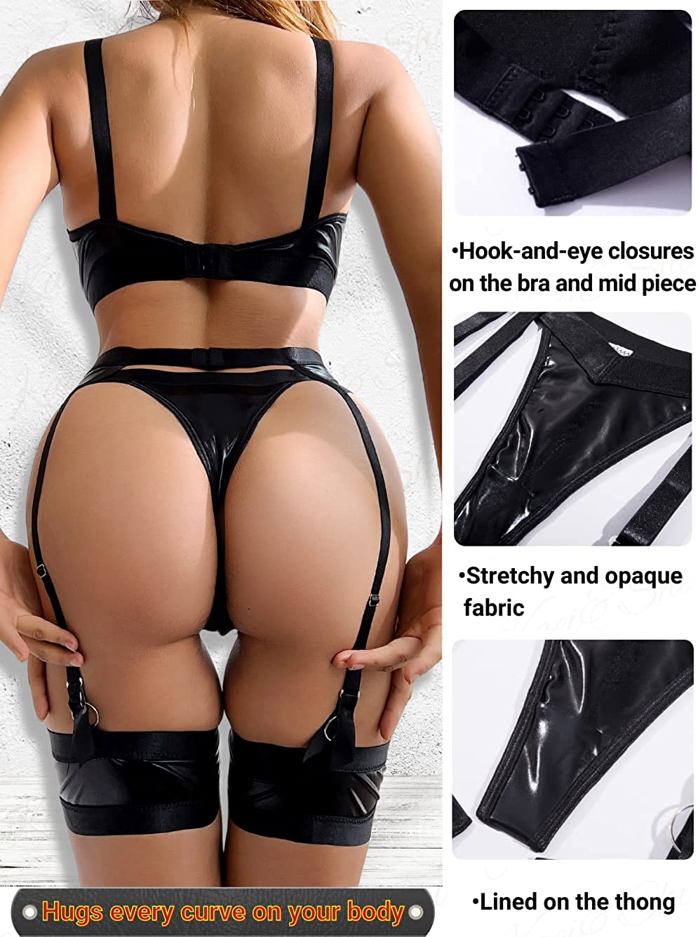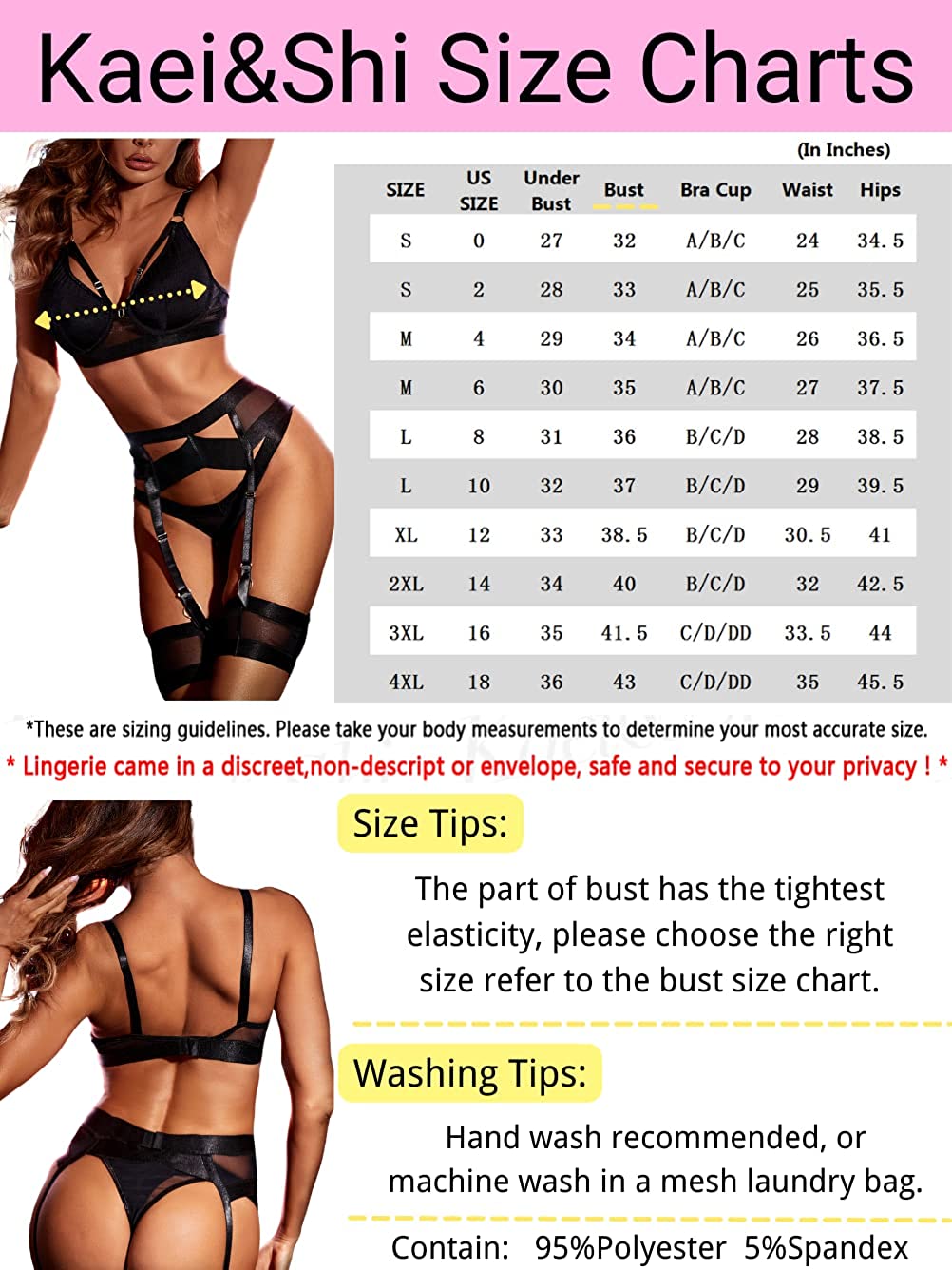 • ✿Feature: This matching bra and panty set with belt and thigh bands is featured with strappy, high leg, metal ring, sheer mesh which shows your curve beautifully.