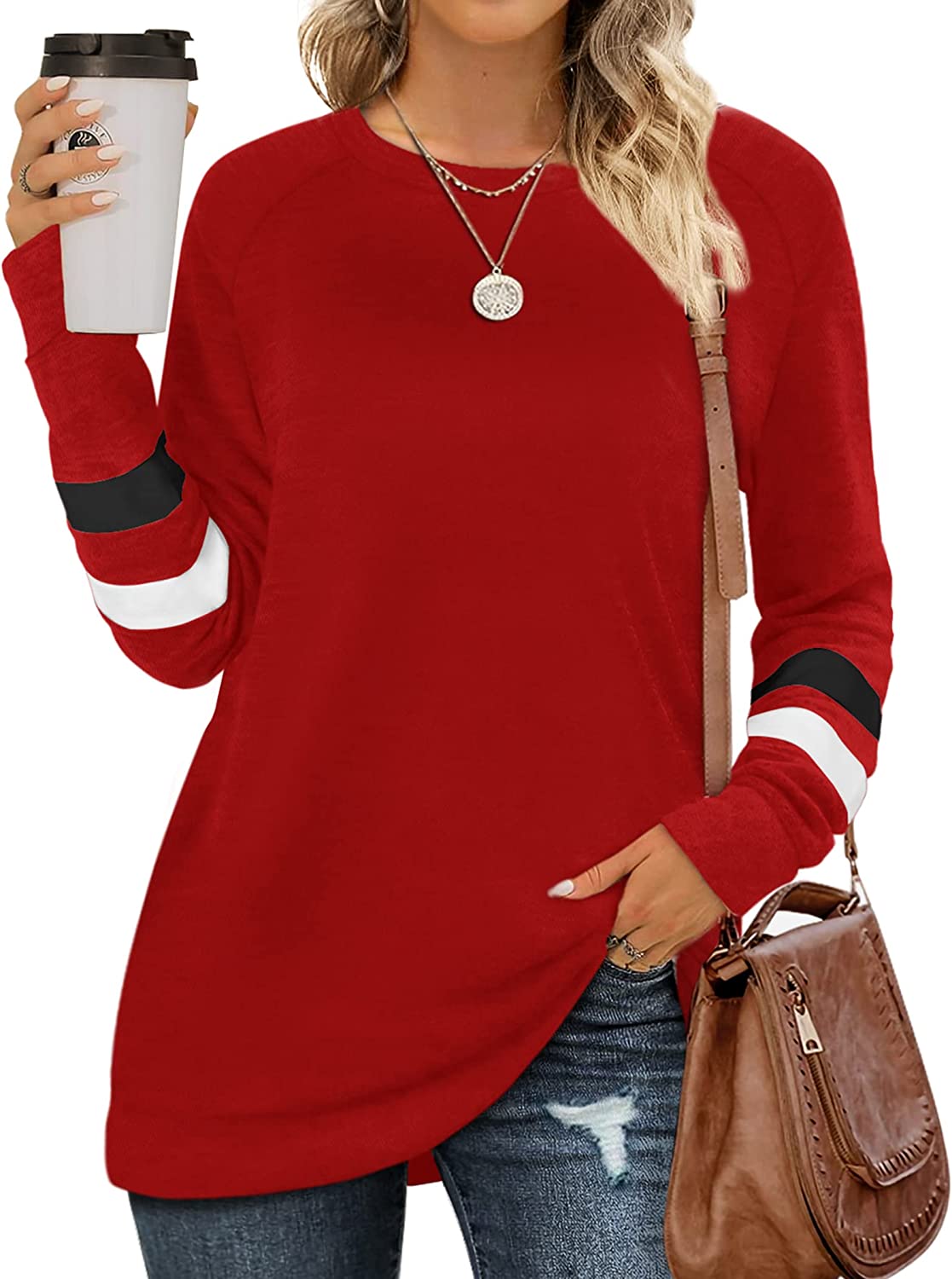✦Designs: Classic Crewneck/Round Neck Sweatshirts, Striped on the Long Sleeve Sweaters, Loose Fit Tunic Tops. The Simple Shirts is Casual Chic and Never out of Date.
