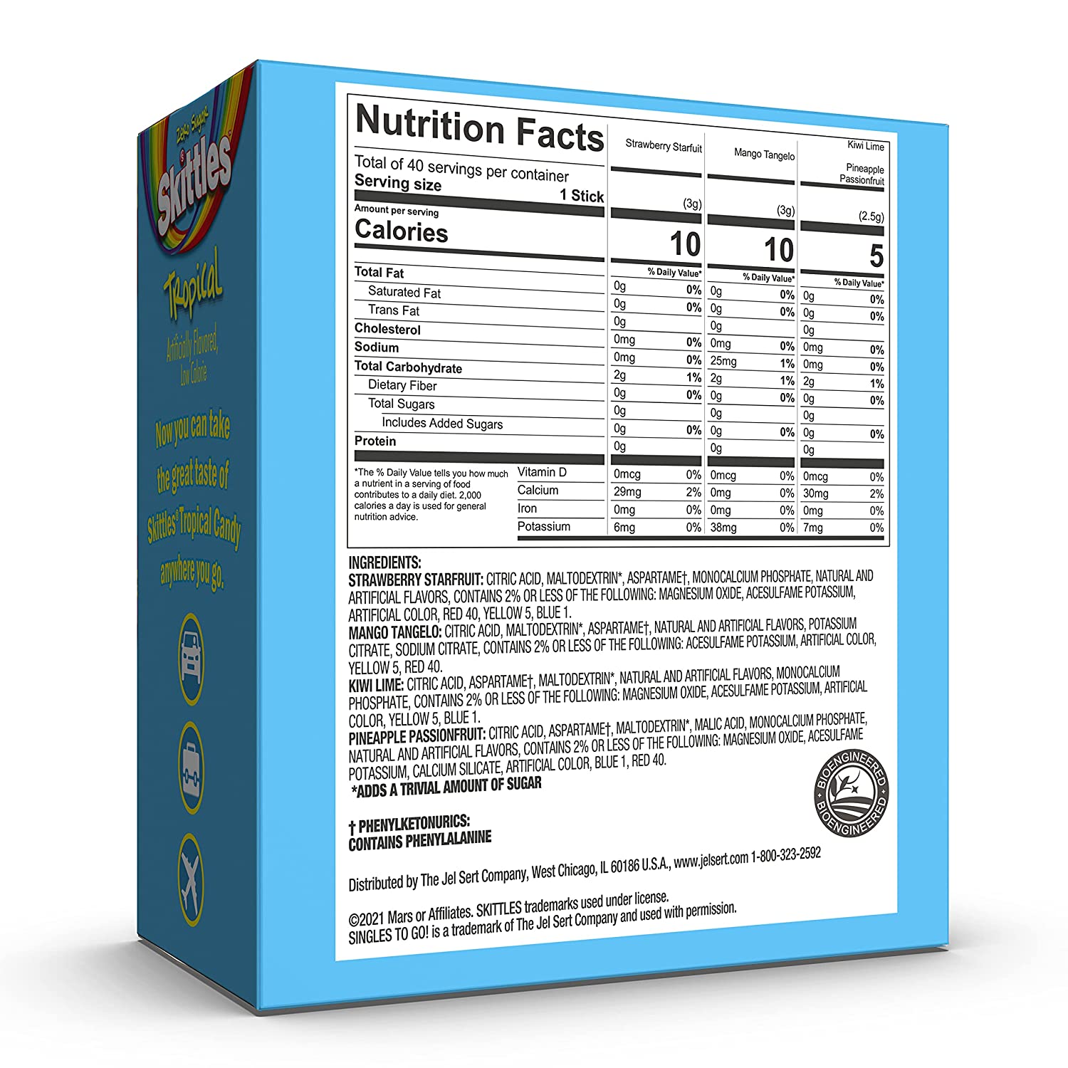 CONVENIENT –With these conveniently packaged single drink mix sticks, you can take the great taste of Skittles Candy with you anywhere you go!