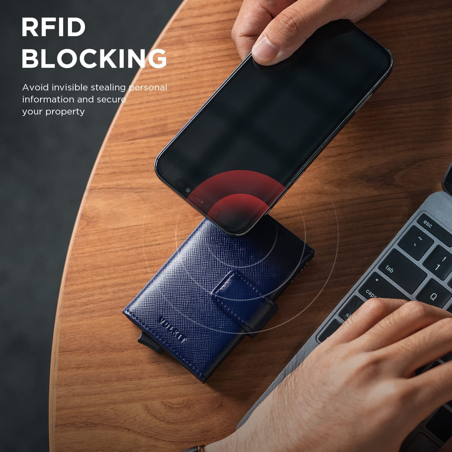 VULKIT Pop Up Wallet, Genuine Leather Automatic Credit Card Holder Wallet RFID Blocking Bifold Pocket Wallet with Banknote Slot for Women Men