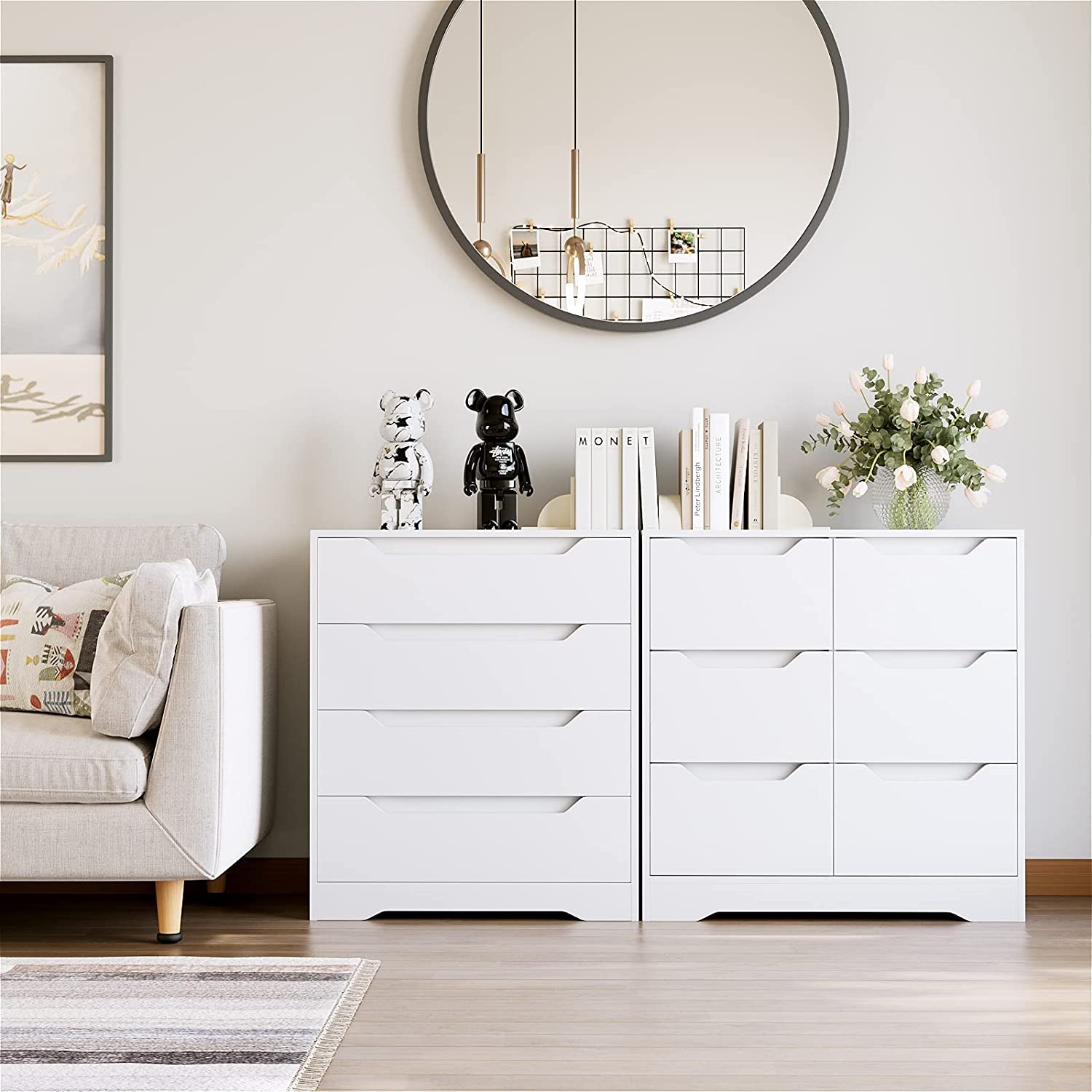 [Large Capacity]: Featuring 4 deep drawers and a wide table top, this dresser is roomy enough to store all your T-shirt, socks, or trousers. Having one or two of these in the bedroom, your sleep space will be sure look neat and tidy instantly
