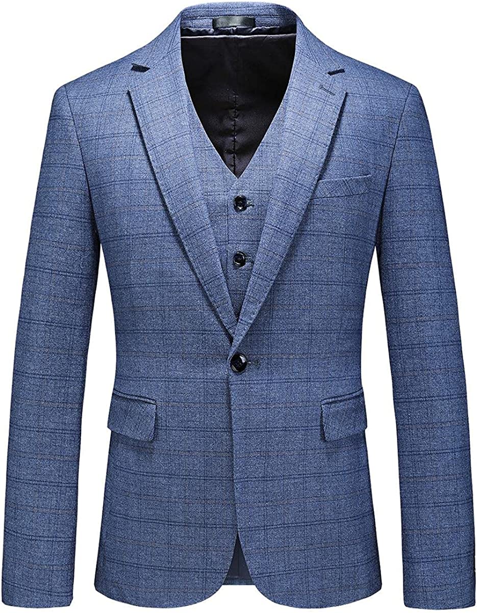 • Men suits 3 piece slim fit plaid blazer jacket tux vest pants set.Size Tip:Some customers who ordered it reflect the size is a little small, You can order it one size up.