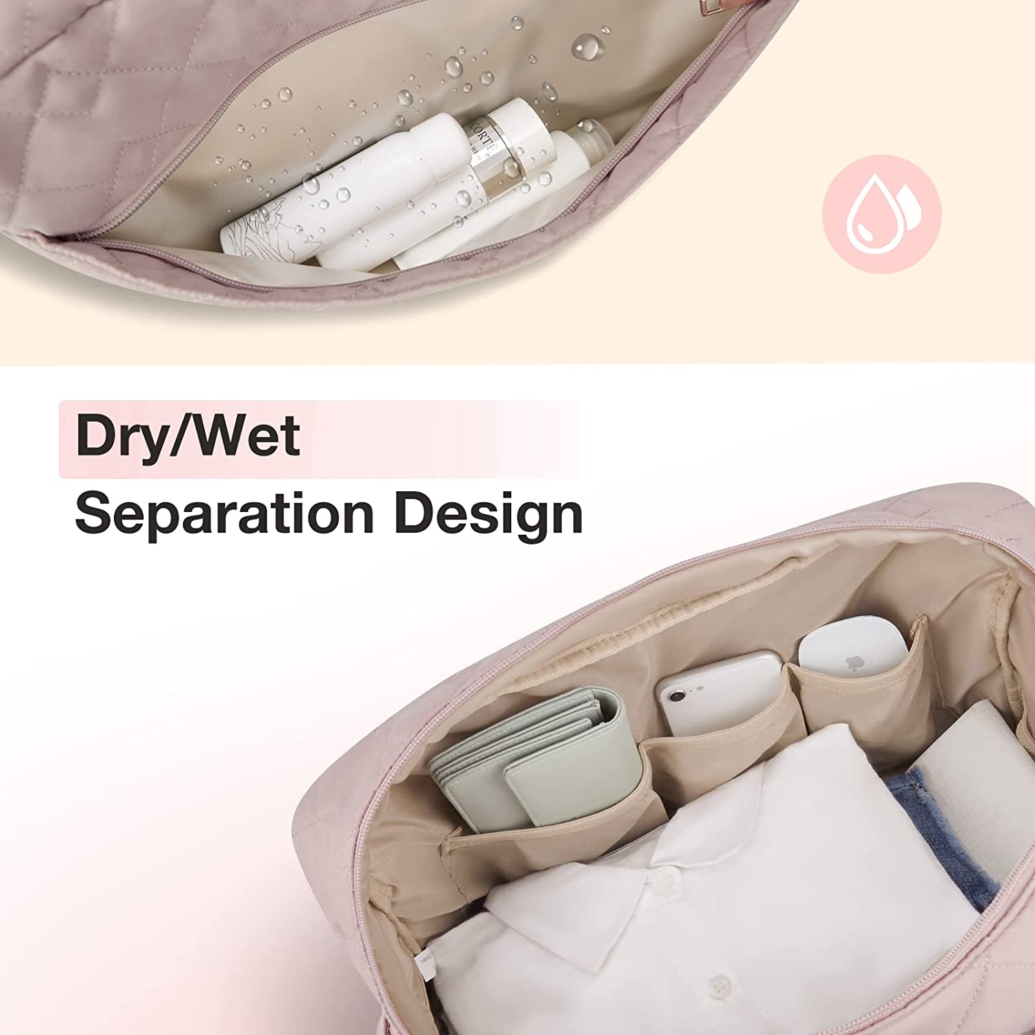 【Dry Wet Separated Weekender Bag】 - The main compartment for your dry items; 1 front waterproof pocket for wet items holds your toiletries, wet towel or swimsuit.Friendly for Swimming/Travel.