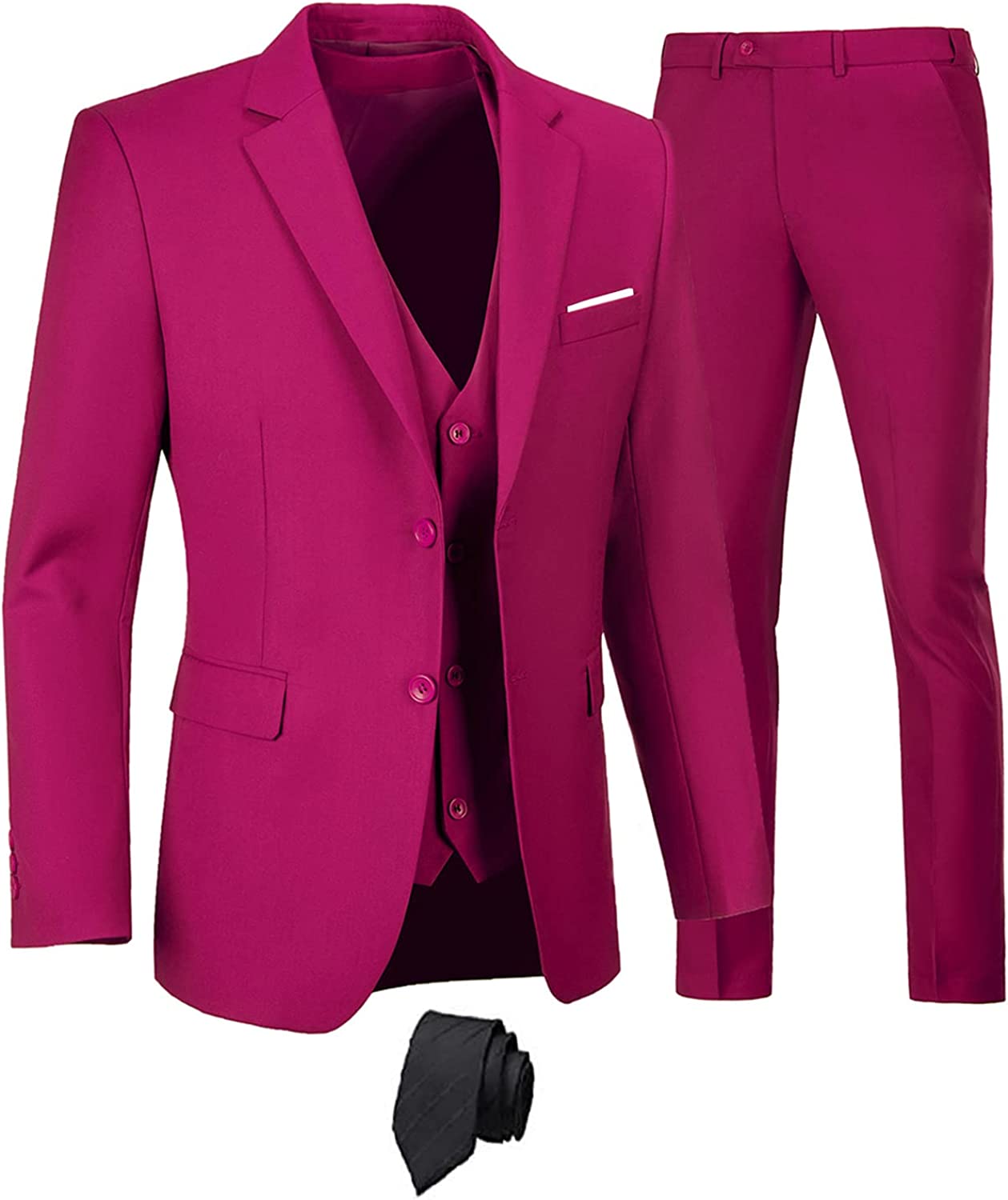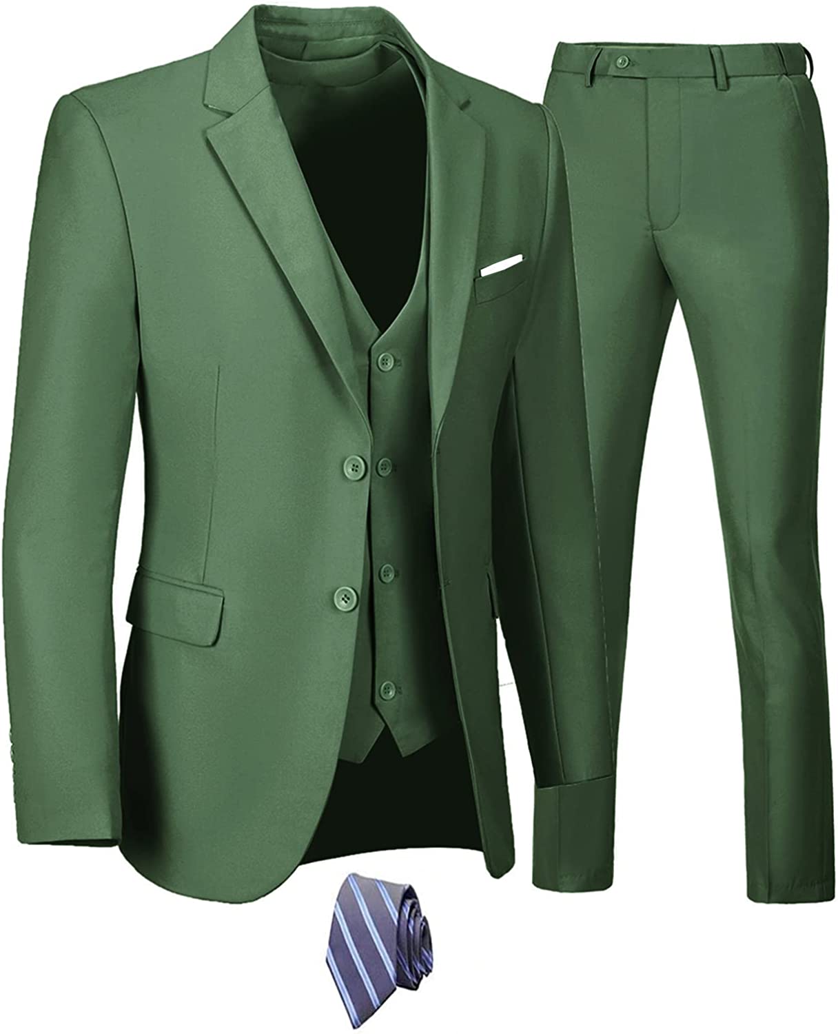 Furuyal Men's Suits 3 Piece Slim Fit Suit Set,Two Button Wedding Business Tuxedo Solid Blazer Jacket Vest Pants with Tie