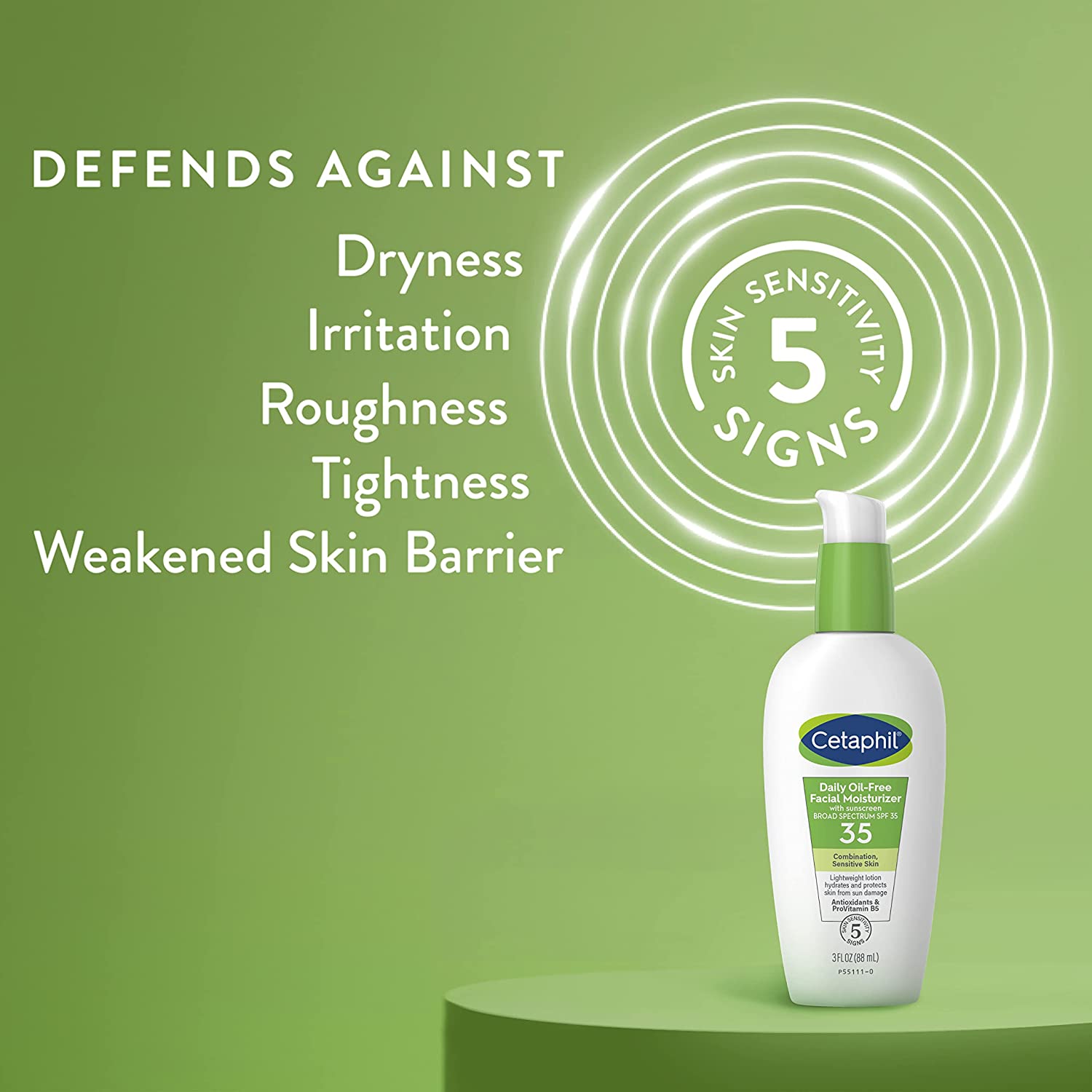 - Cetaphil Daily Facial Moisturizer SPF 35: Three-in-one facial moisturizer hydrates, nourishes and protects sensitive, combination skin