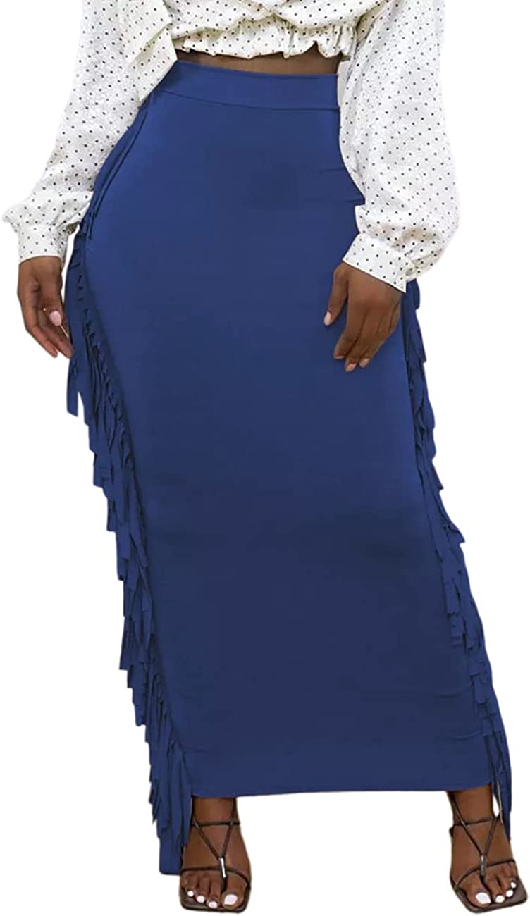 Lrady Women's Elastic Waist Slim Bodycon Side Tassels Long Maxi Pencil Skirts