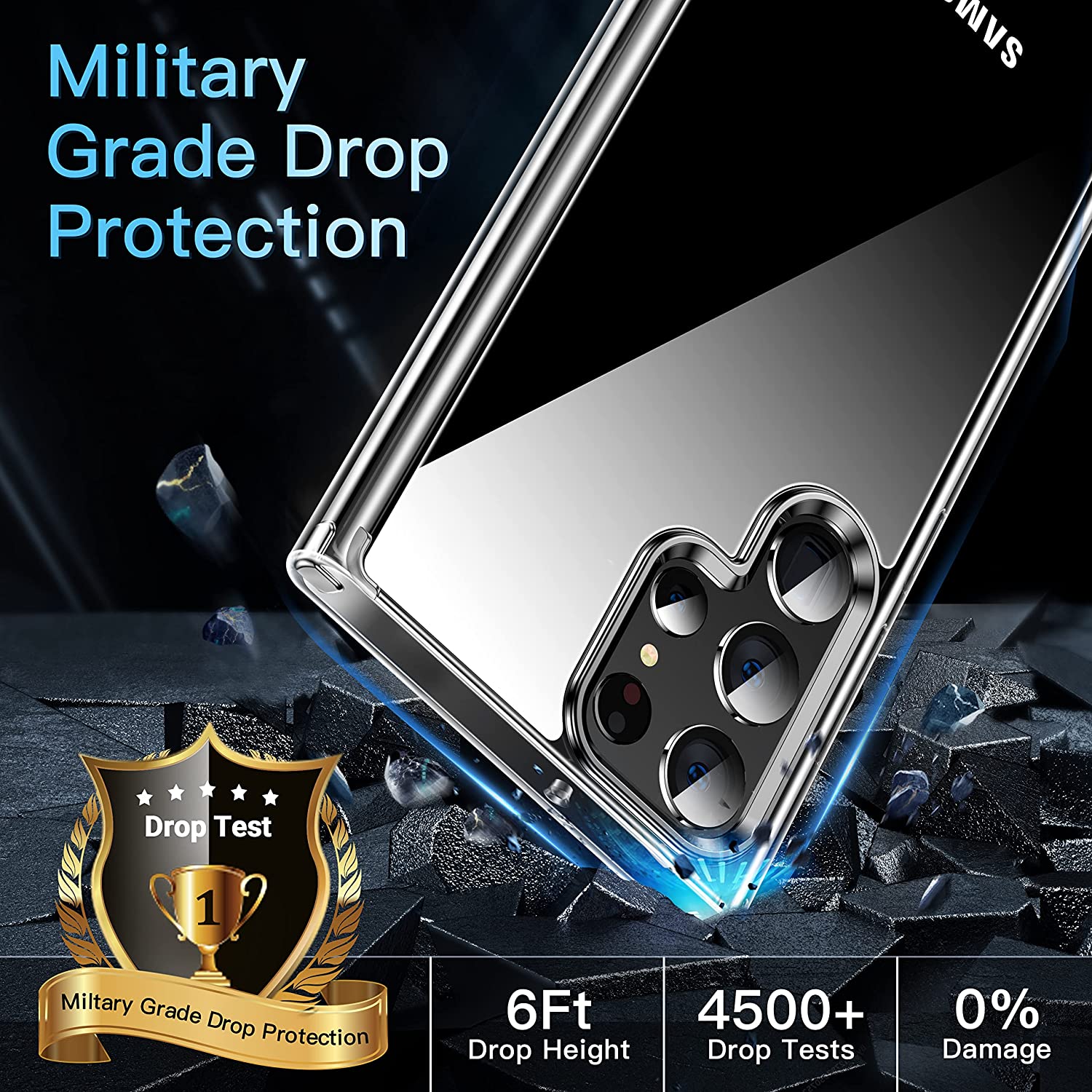 - ?[Certified Military Grade Drop Protecion]: Equipped with 4*High-rebound shockproof airbags and anti-explosion backplate structure, this protective case could absorb 99% drop impact, withstand 4500+ times professional drops from 6FT height with 0 damage. Your New Samsung will be guarded by this S22 Ultra phone case.