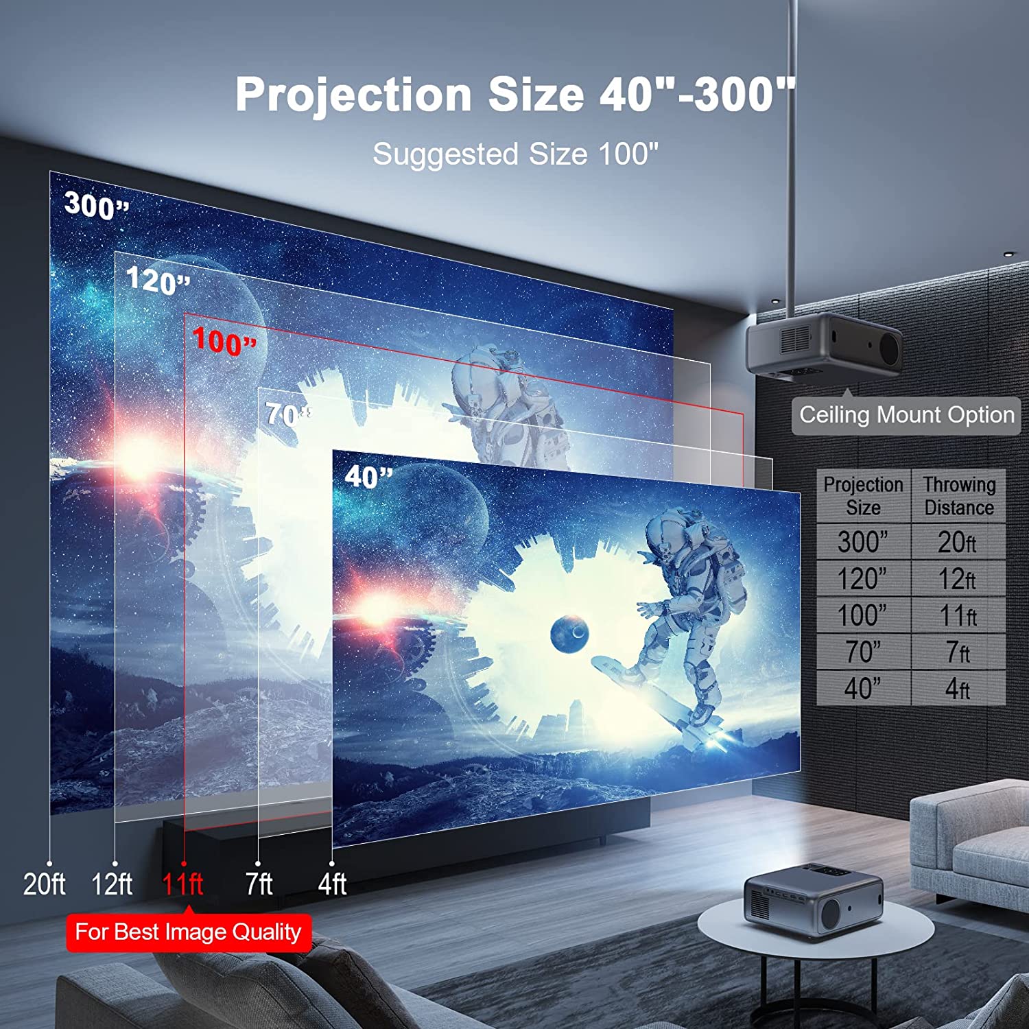 - ?【Native 1080P, 15000L & 550 ANSI Lumens, 4K supported】 2023 upgraded WiFi projector, using the original physical resolution of 1920x1080, has 3 layers of refractive glass lenses. Compared to our competitors who use single layer lenses, we use multi-layer refractive glass lense technology to reduce projecting blurry edges on screen. Its display is calculated to render sharper resolution to the full screen. It has 550 ANSI lumens, much brighter and more colorful than other 1080p projectors.
