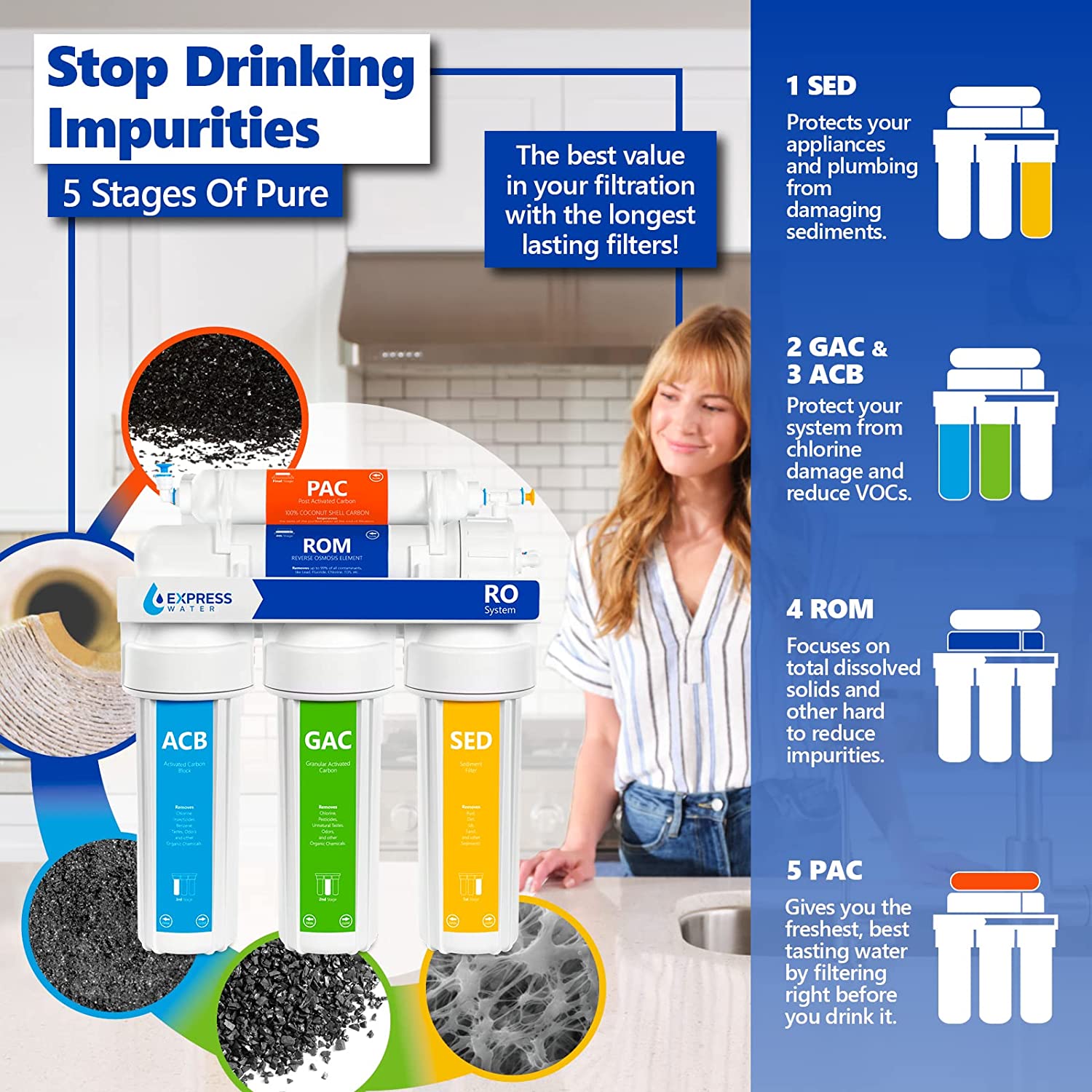 - Reverse Osmosis Water Filter: Experience what water should taste like with the Express Water reverse osmosis water filtration system reducing up to 99.99% of Lead, Chlorine, Fluoride, Nitrates, Calcium, Arsenic, and more.