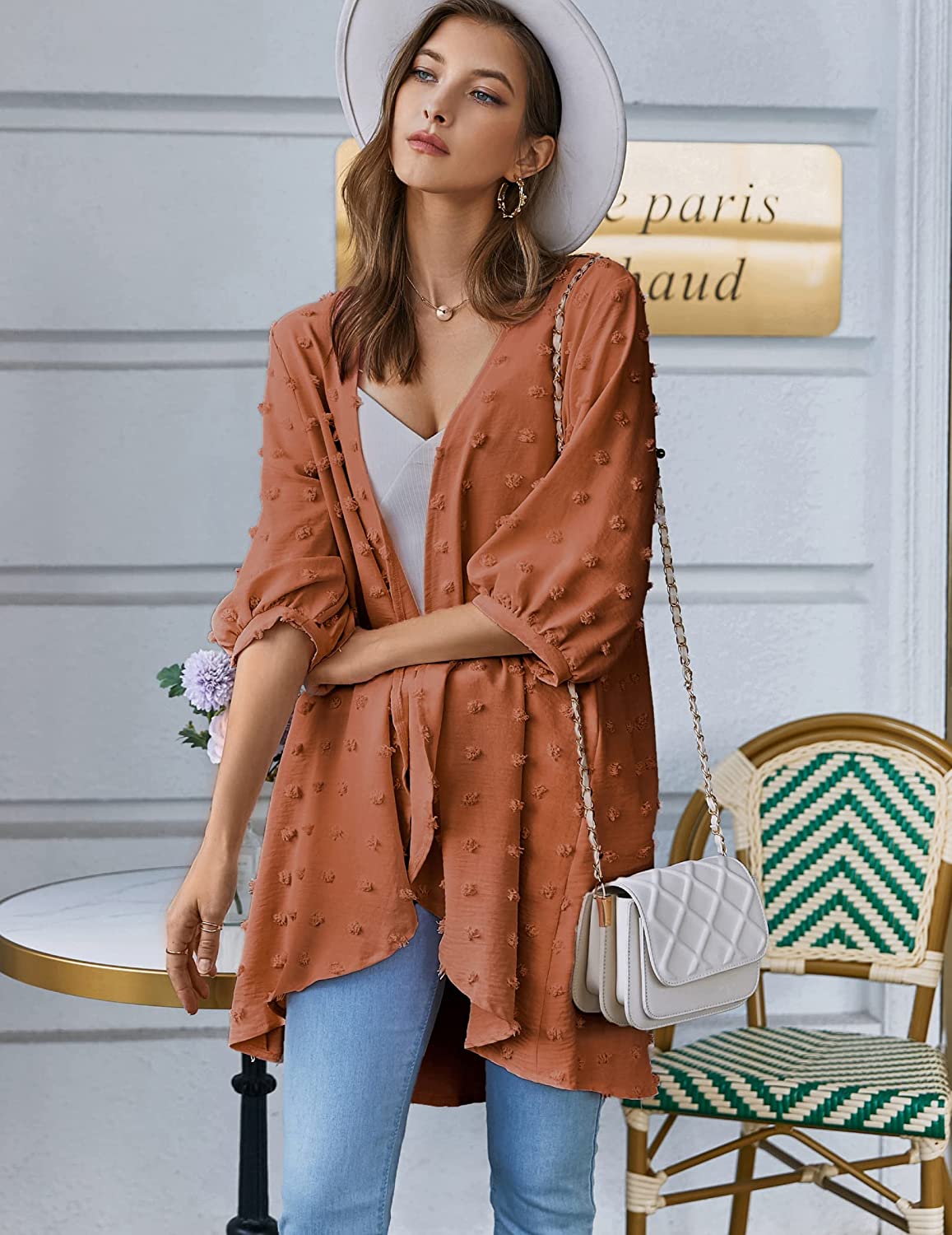 Hotouch Womens Cardigan Summer Chiffon Swimsuit Coverup Kimono Open Front 3/4 Sleeve Lightweight Beach Cover Up Tops