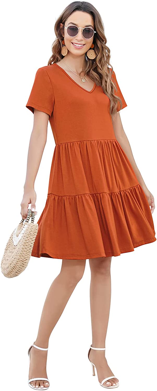Match: Ruflle tunic flowy dresses for women is great pair with high heels, sandals or boots, tights, leggings, hat, or simply laying with coats, jackets in spring, fall and winter. You will leave a fantastic impression on vacation. Above knee length floral dress and flowy swing shift A-Line dress make you elegant and radiant. Super cute and beautiful babydoll mini dress can add your vitality and also nice for juniors dresses.
