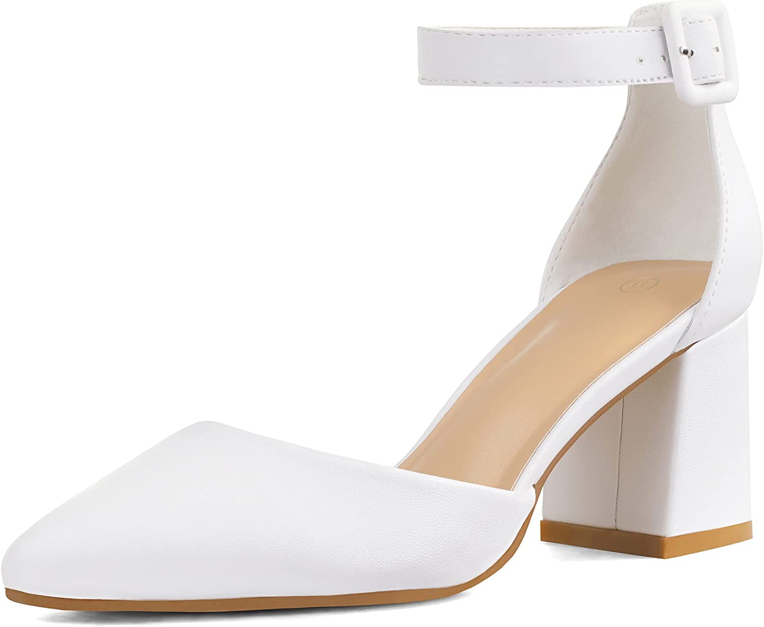 mysoft Women's Pointed Toe Low Chunky Heels Closed Toe Ankle Strap Dress Pump Shoes
