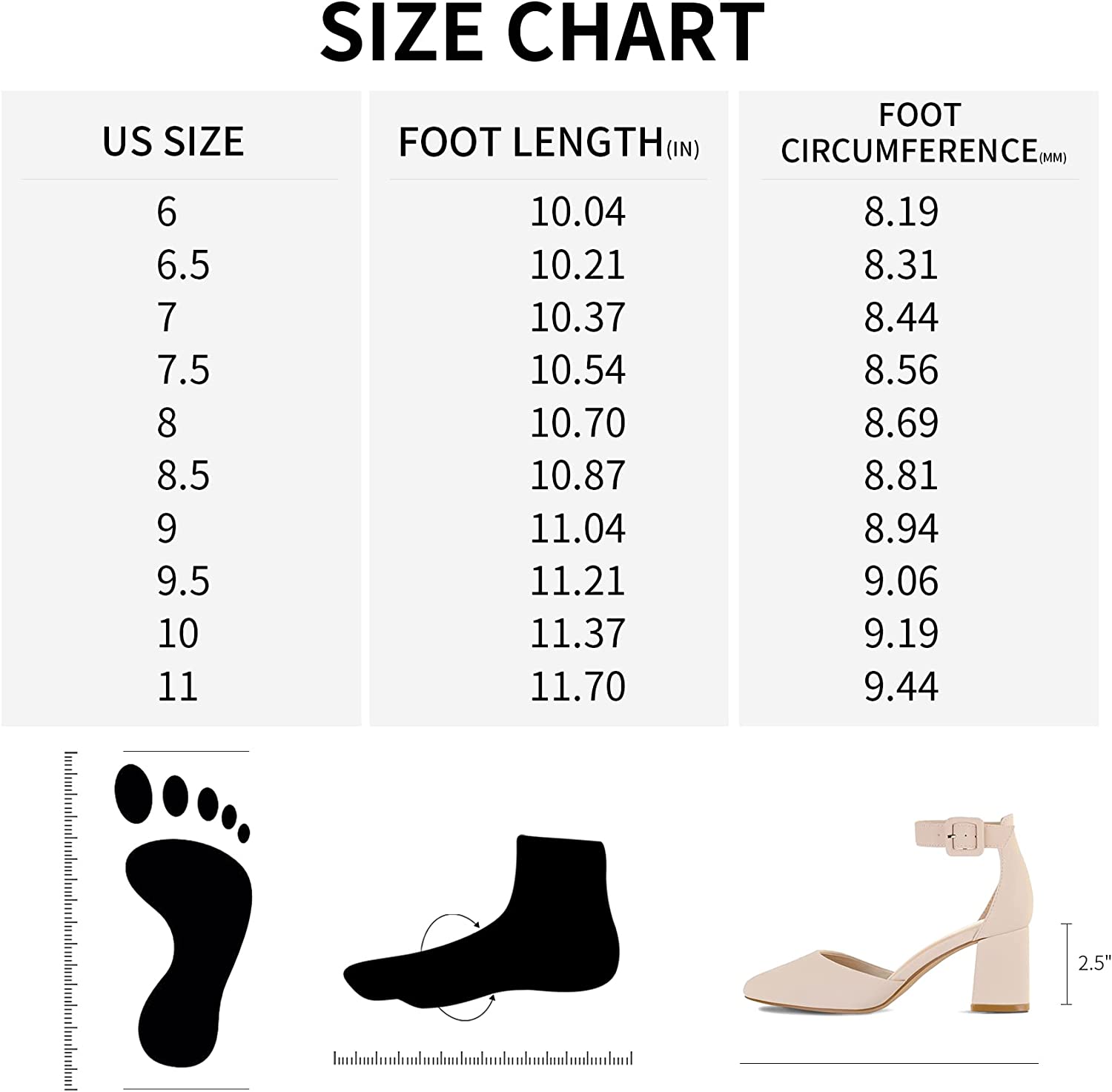 • 【Measurement】Heel height: 2.5" (approx), Chunky heels also provide maximum stability and comfort.