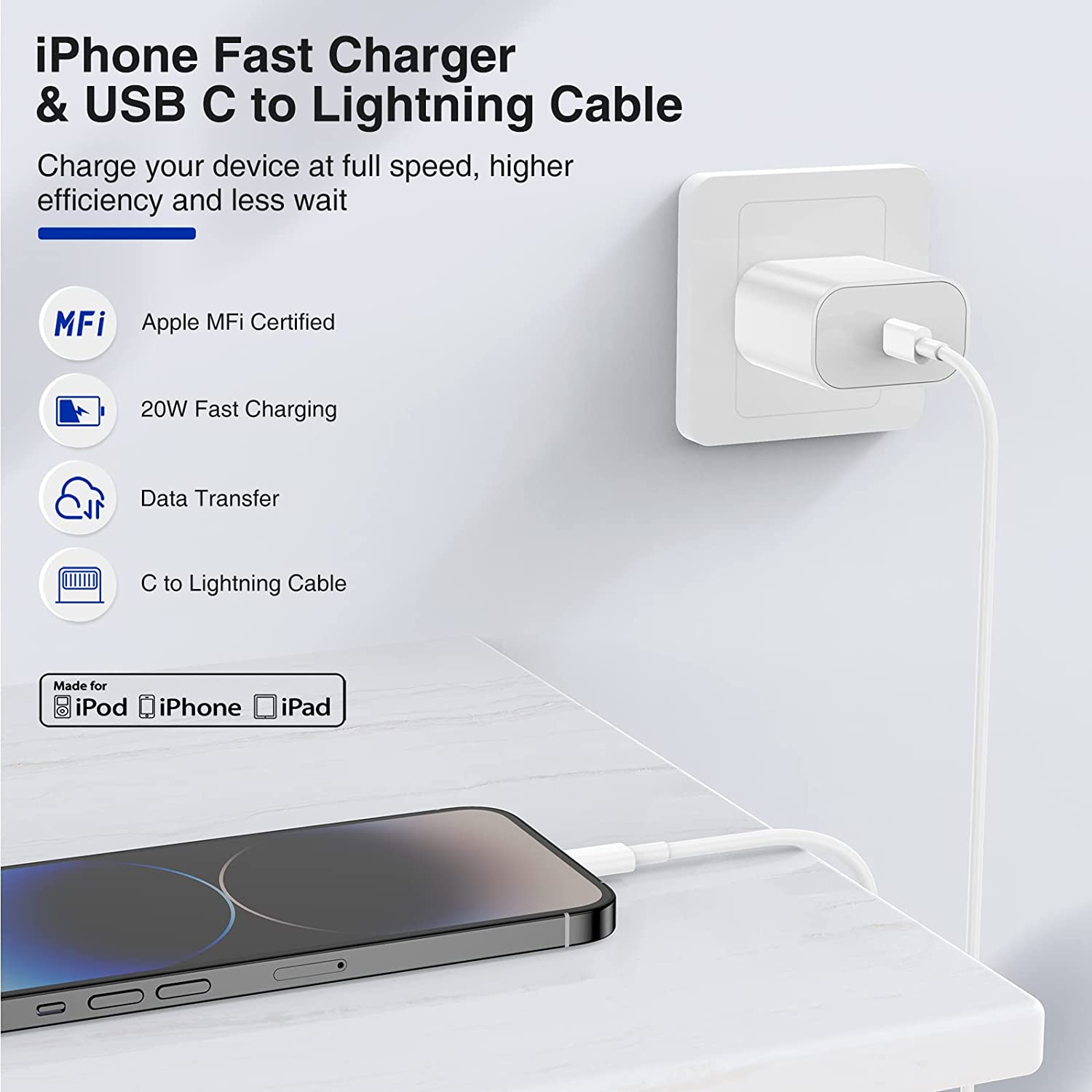 • [Quality Service] What you get: 2Pack iPhone Fast Charger Block and Pack USB C to lightning Cable 6FT. For your better shopping experience, we will provide a 12-month product guarantee service for the product. If the product fails, we will give you a replacement or refund.