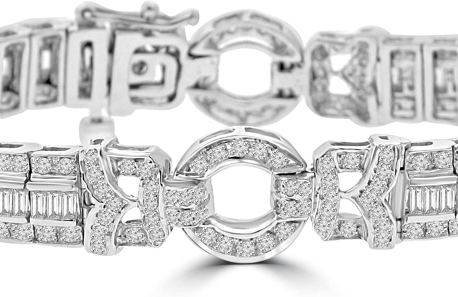 Madina Jewelry 7.27 ct Ladies Baguette and Round Cut Diamond Tennis Bracelet In Channel and Pave Setting