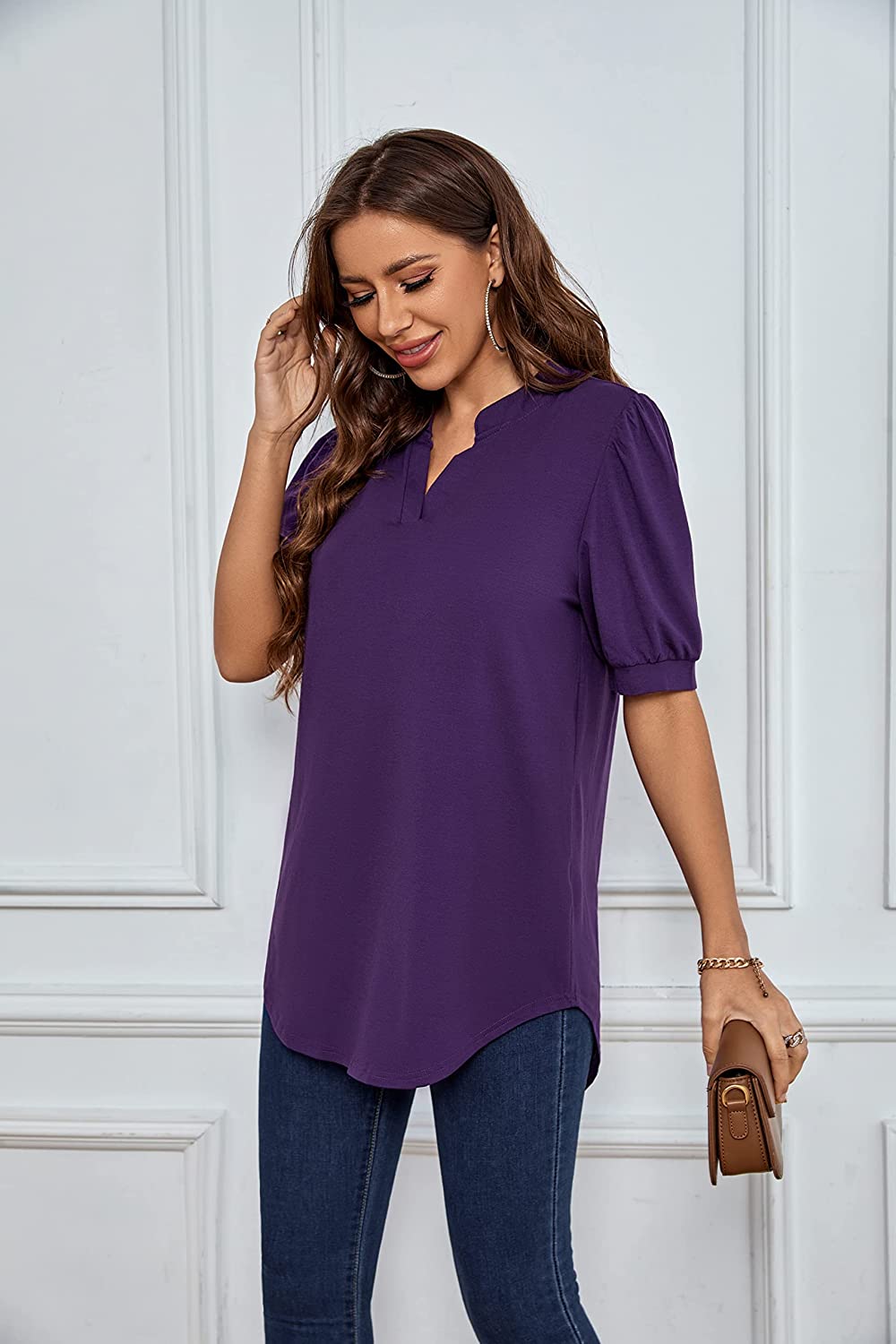 This shirt also features a v-neckline, cute collar detail, roll up 3/4 sleeves, a rounded hemline, and a trendy high-low cut! From the boardroom to the backyard, this beautiful tunic will have your heart all season long! Great choice for date, casual, daily life, work, vacation, outdoor, party, shopping.