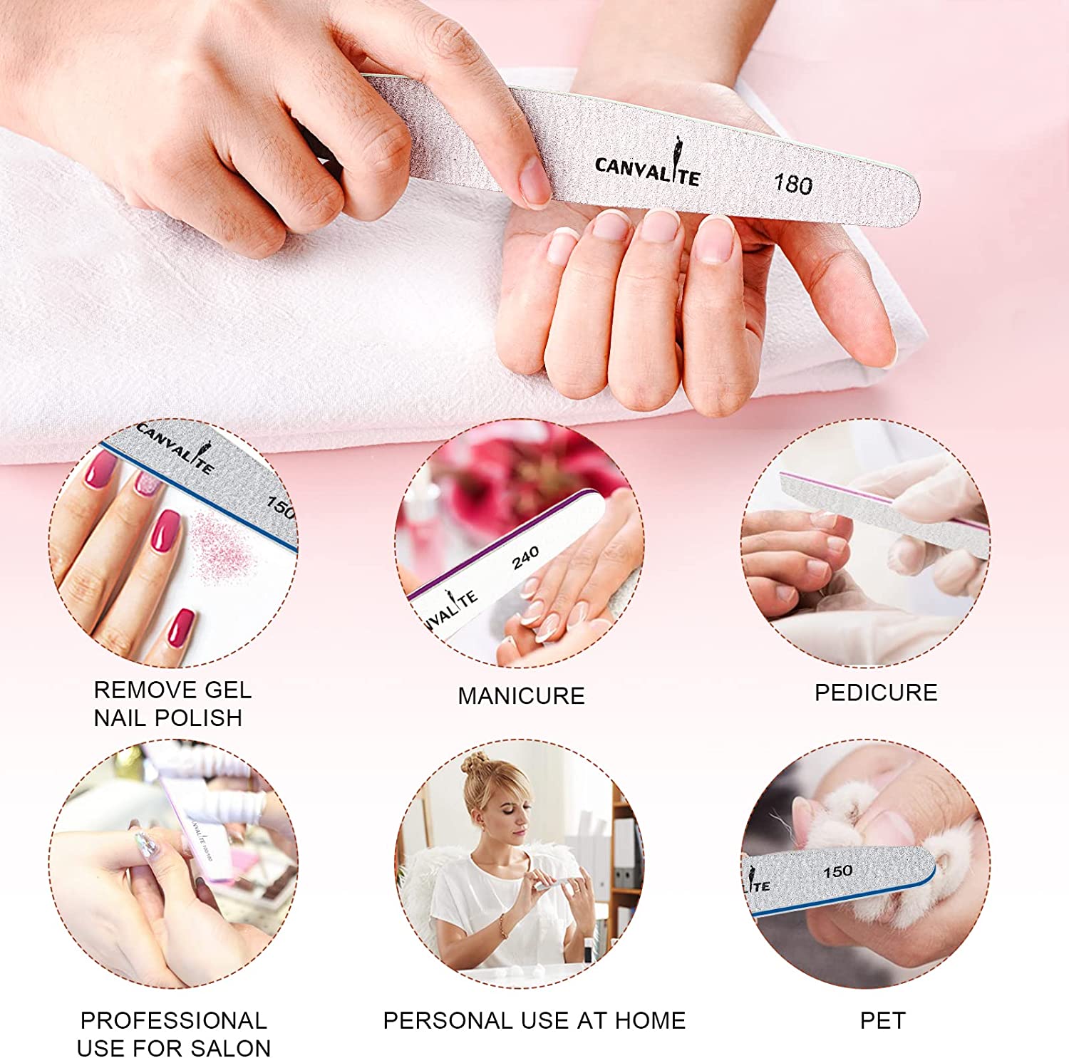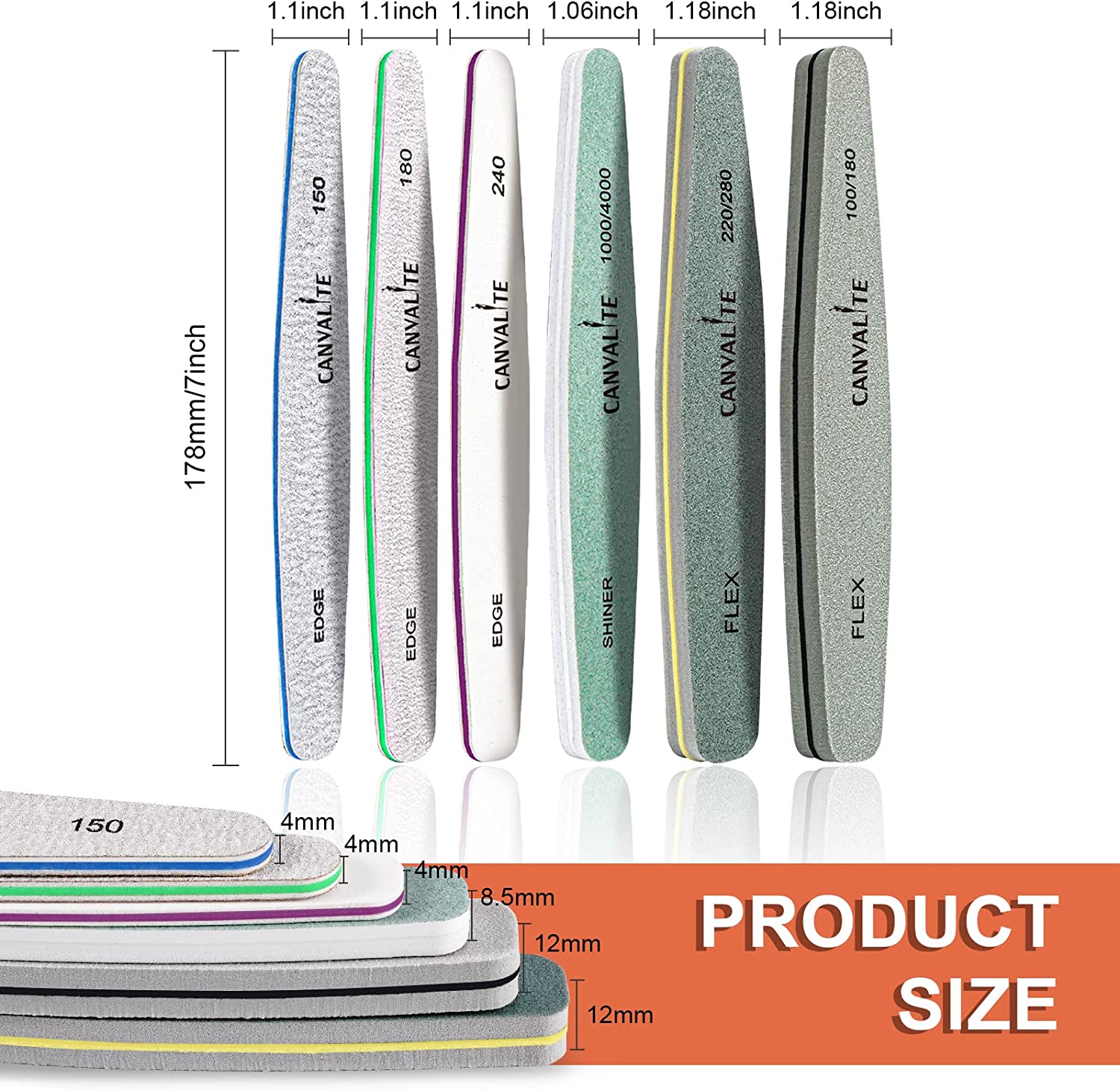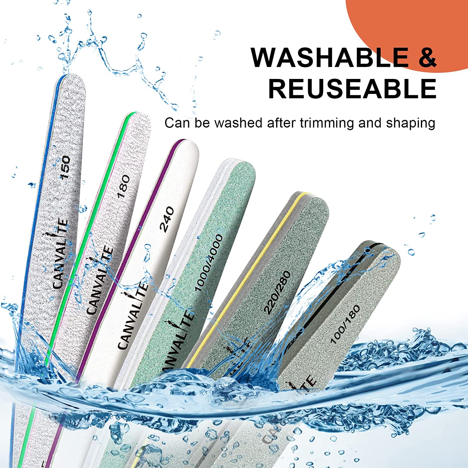 Nail Files Canvalite Nail File and Buffer Professional Emery Boards Washable Double Sided Reusable Manicure File for Home and Salon Use 6 PCS