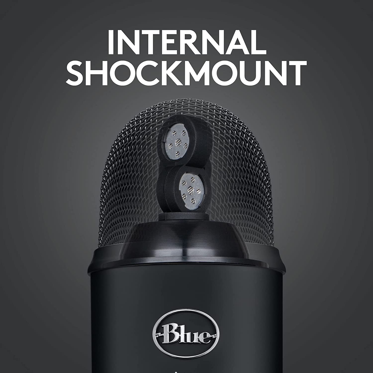 Internal Blue Yeti Shockmount: This cardioid microphone’s groundbreaking three-capsule array is isolated by an internal shockmount to help ensure clean, articulate sound
