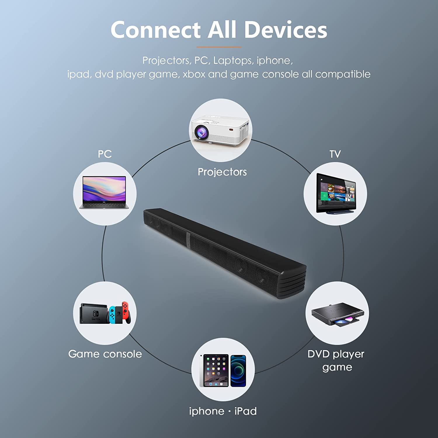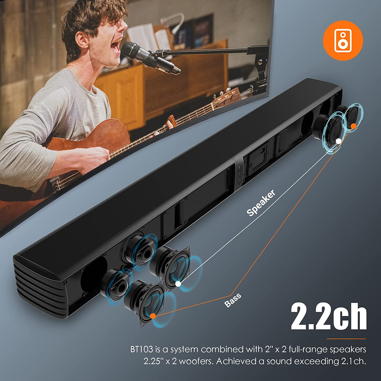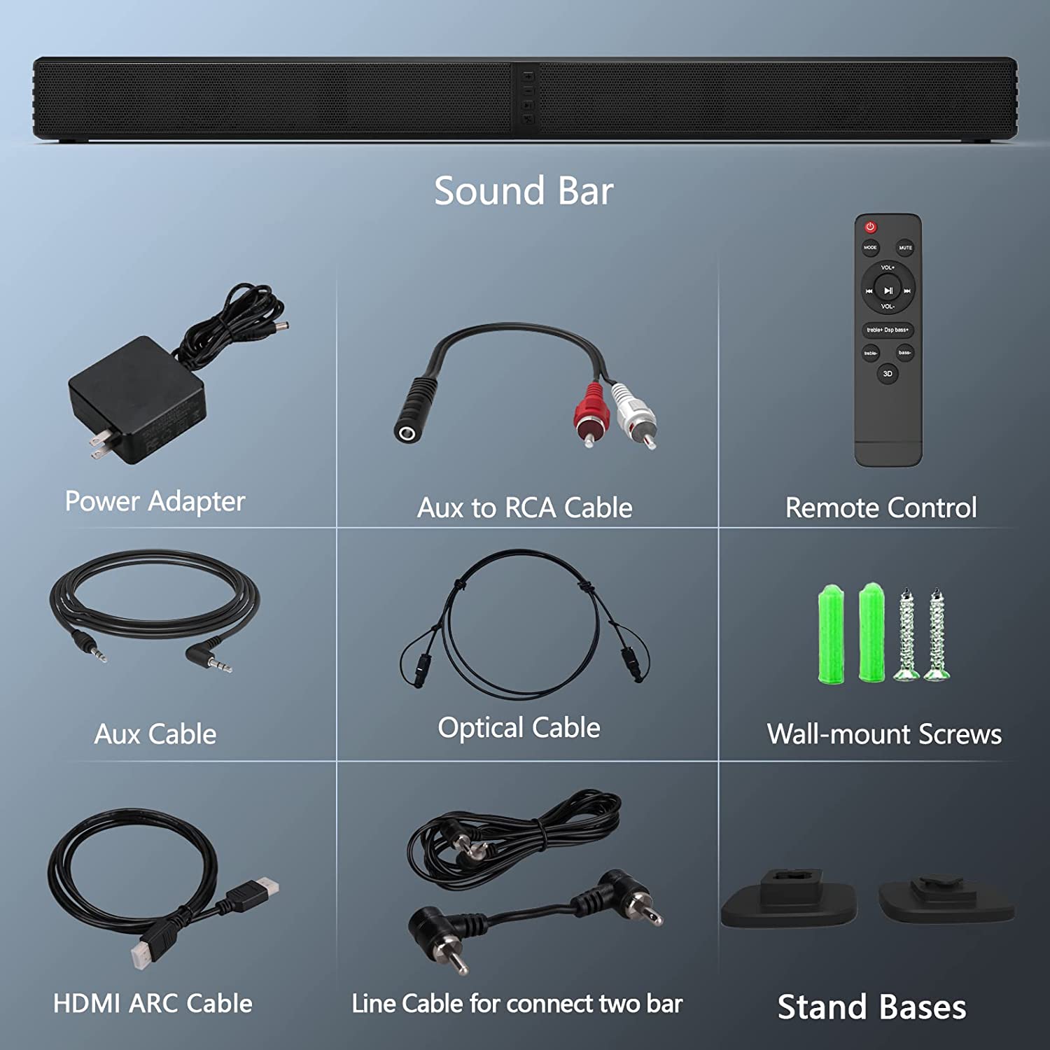 GEOYEAO Sound Bars for TV, 2.2 CH 32 inch 3D Surround Sound Home Theater System with HDMI-ARC/Opt/Bluetooth 5.0, Built-in Dual Subwoofer & 10 DSP, Treble/Bass Adjustable, 2 in 1 Separable Design