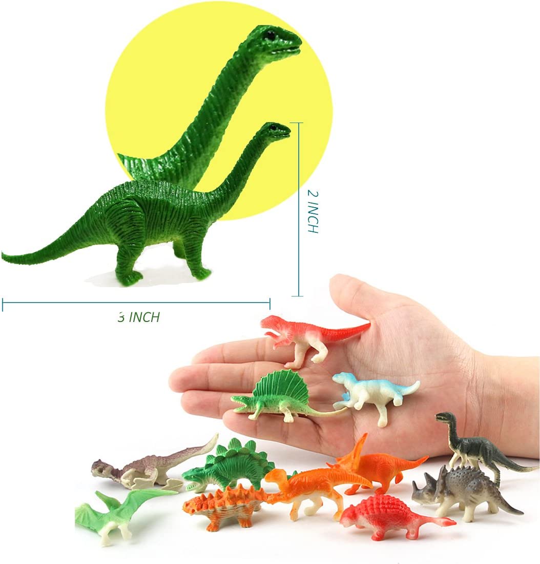 - These mini dinosaurs measure an average of 2.5" from head to tail (may be a diagonal measurement depending on dinosaur). These dinosaurs are tested and approved by real kids (and adults and scientists as well). Our dinosaurs are the perfect size for party favors, birthday party games, educational displays, decoration, or rewards! Dinosaurs are designed with high durability in mind, and are built to withstand rough and hands-on indoor and outdoor play!