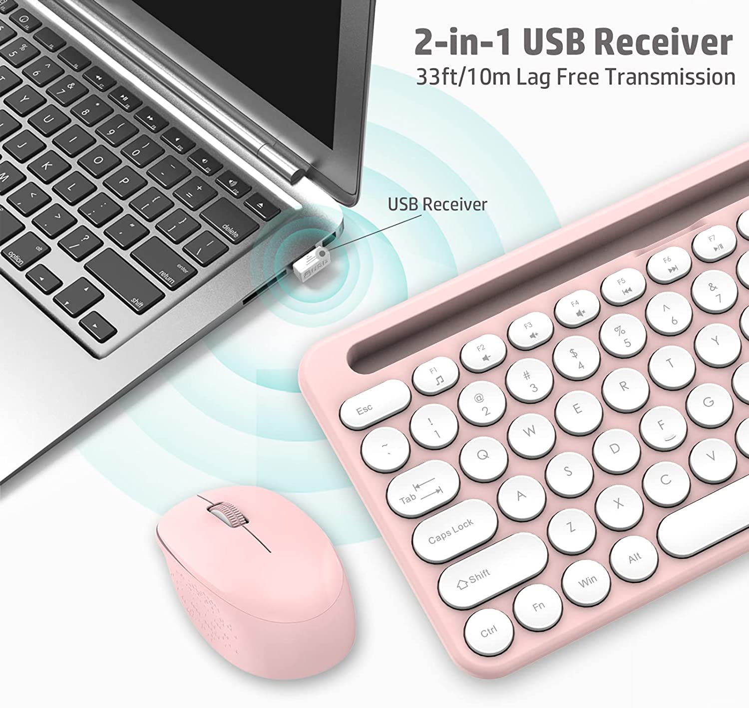 - 【Easy 2.4G Wireless Setting up】: Plug and play, simply connect both your portable keyboard and mouse with one USB receiver without any software and then enjoy a strong and reliable wireless connection up to 10 meters(33 ft) away with virtually no delays or dropouts.