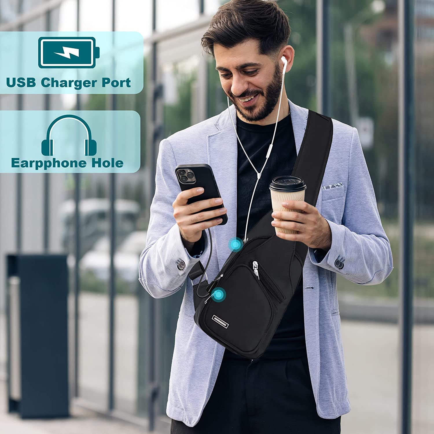 • 【USB Charger Port & Headphone Hole】Cross body bag with USB Charging Port & Headphone Hole(without portable USB charging cable), you may charge your mobile phone with the USB charging port and enjoy music easily. A Mobile Phone Pocket in shoulder strap makes you convenient for charging and listening while walking.