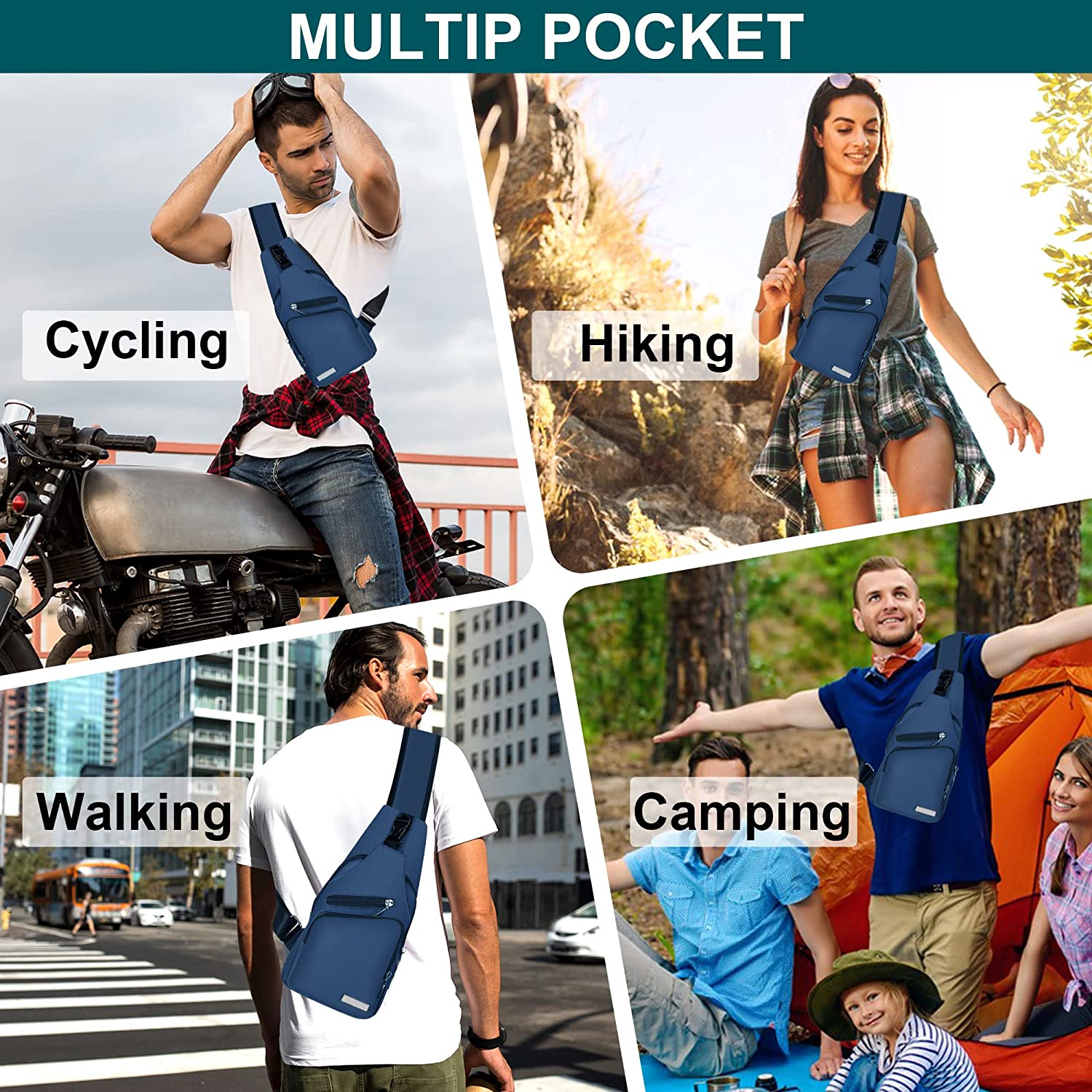 Sling Bag Crossbody Backpack for Women Men Chest Bag Hiking Bag with USB Charging Port for Camping Biking Travel Cycling