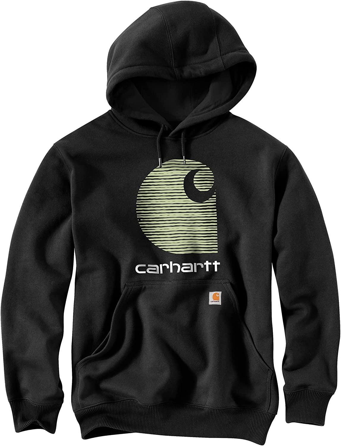 When there are light showers in the forecast, head out in this men's Carhartt hooded sweatshirt. Midweight cotton-blend fabric keeps you warm, and a water-repellent coating sheds light rain. The generous loose fit makes it easy to throw on over another layer.