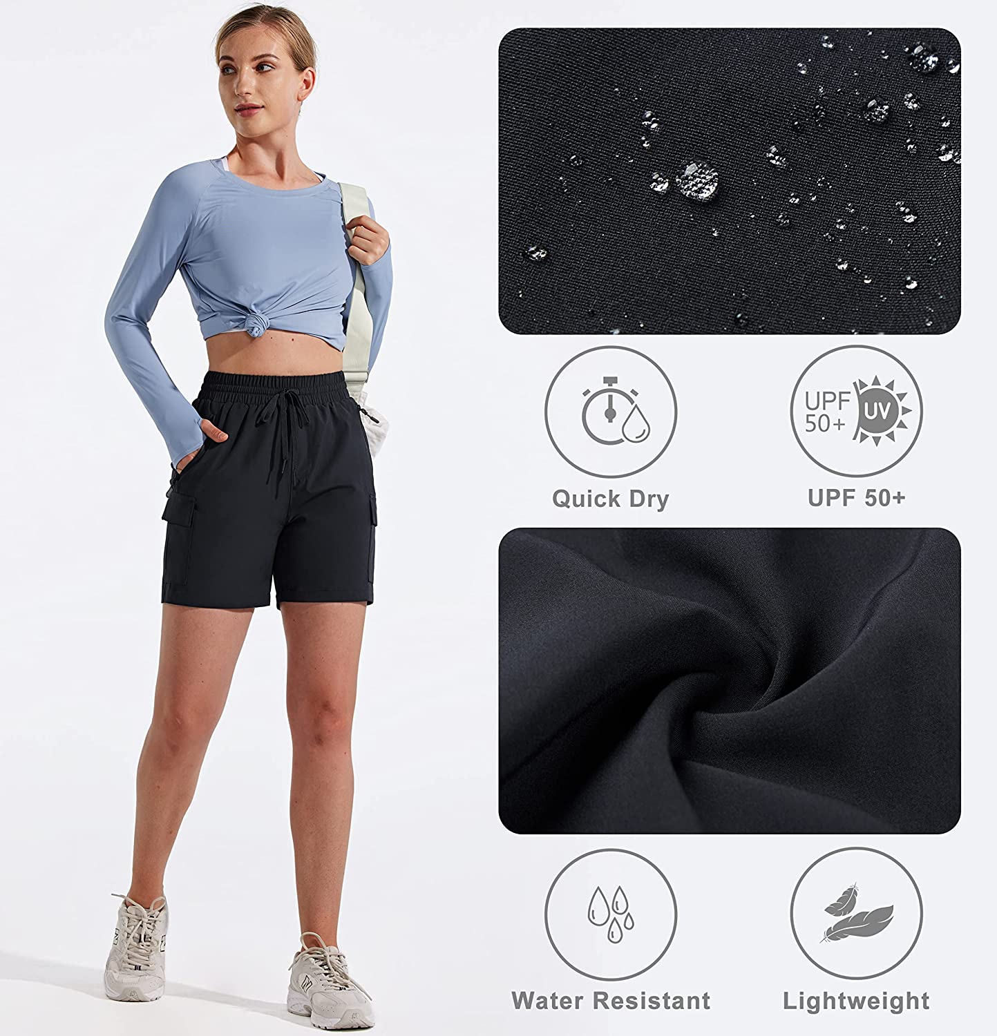 • Advanced Technology ---- The womens hiking shorts made of lightweight, quick dry, breathable and water-resistant fabric wicks moisture to keep your skin cool and fresh all day.
