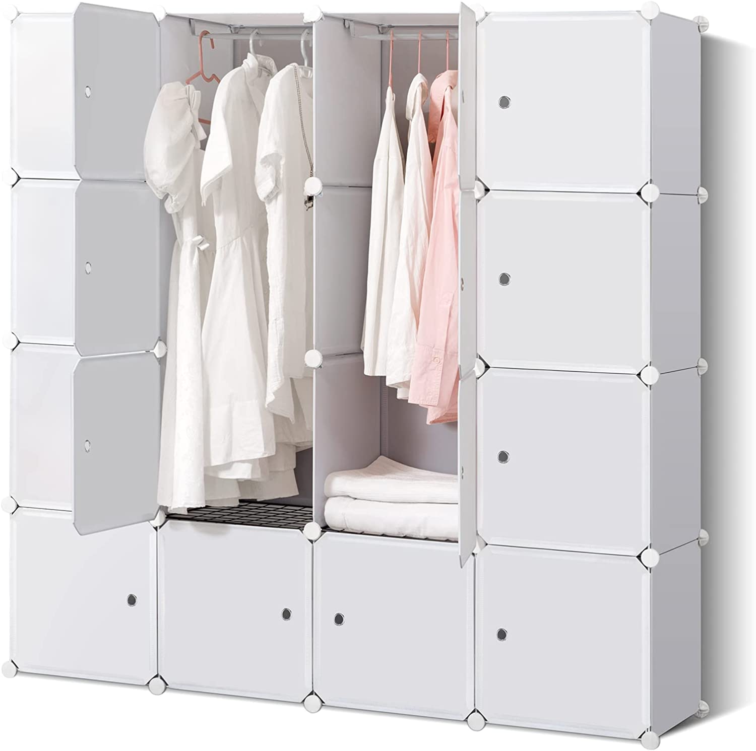 BRIAN & DANY Portable Wardrobe Closet for Hanging Clothes, Bedroom Armoire with Doors, Modular Cabinet for Space Saving, Ideal Storage Organizer Cube for Books, Toys, Towels (16-Cube), White