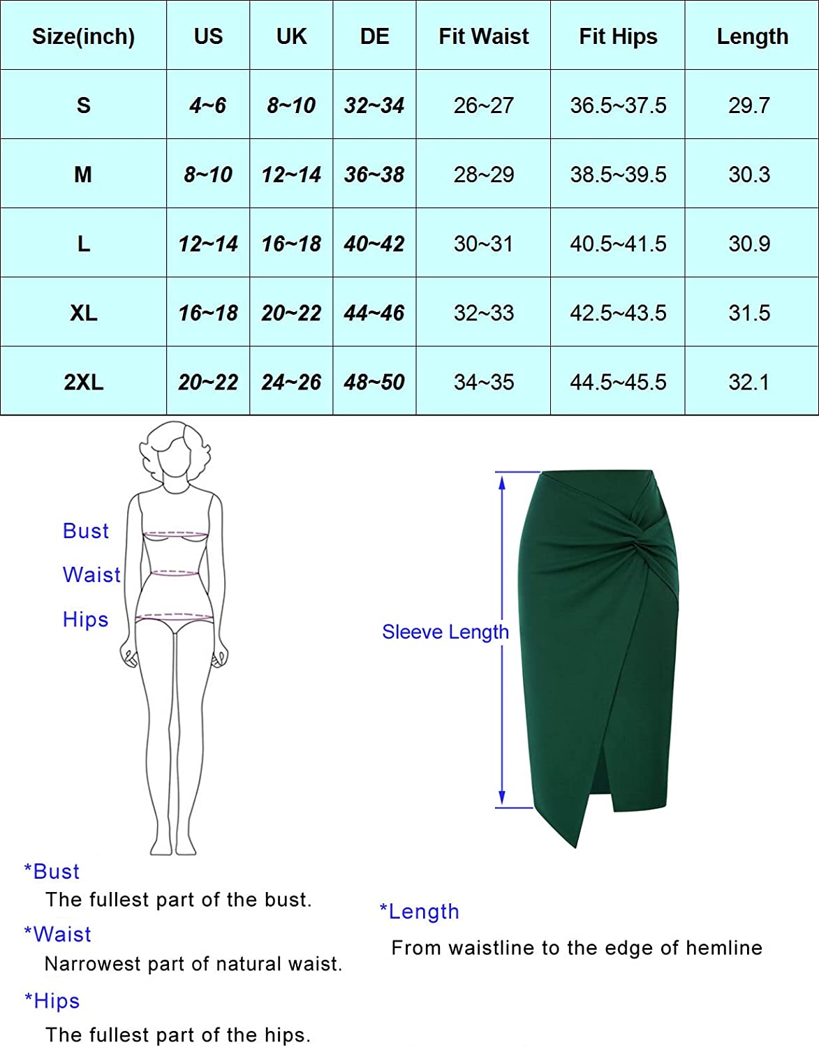 • Size Guide: S=US(4-6), M=US(8-10), L=US(12-14), XL=US(16-18), XXL=US(20-22). Warming Tips: The maximum washing temperature: 30℃. Package: 1*Skirt(No Accessories Included)