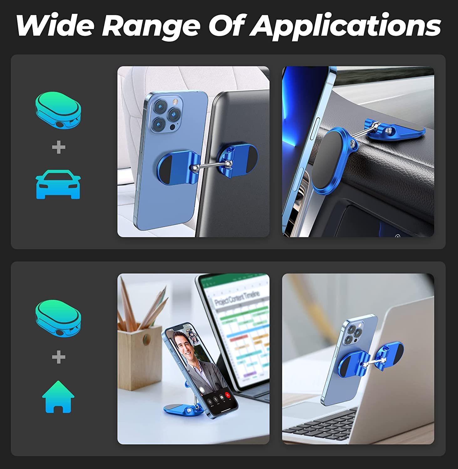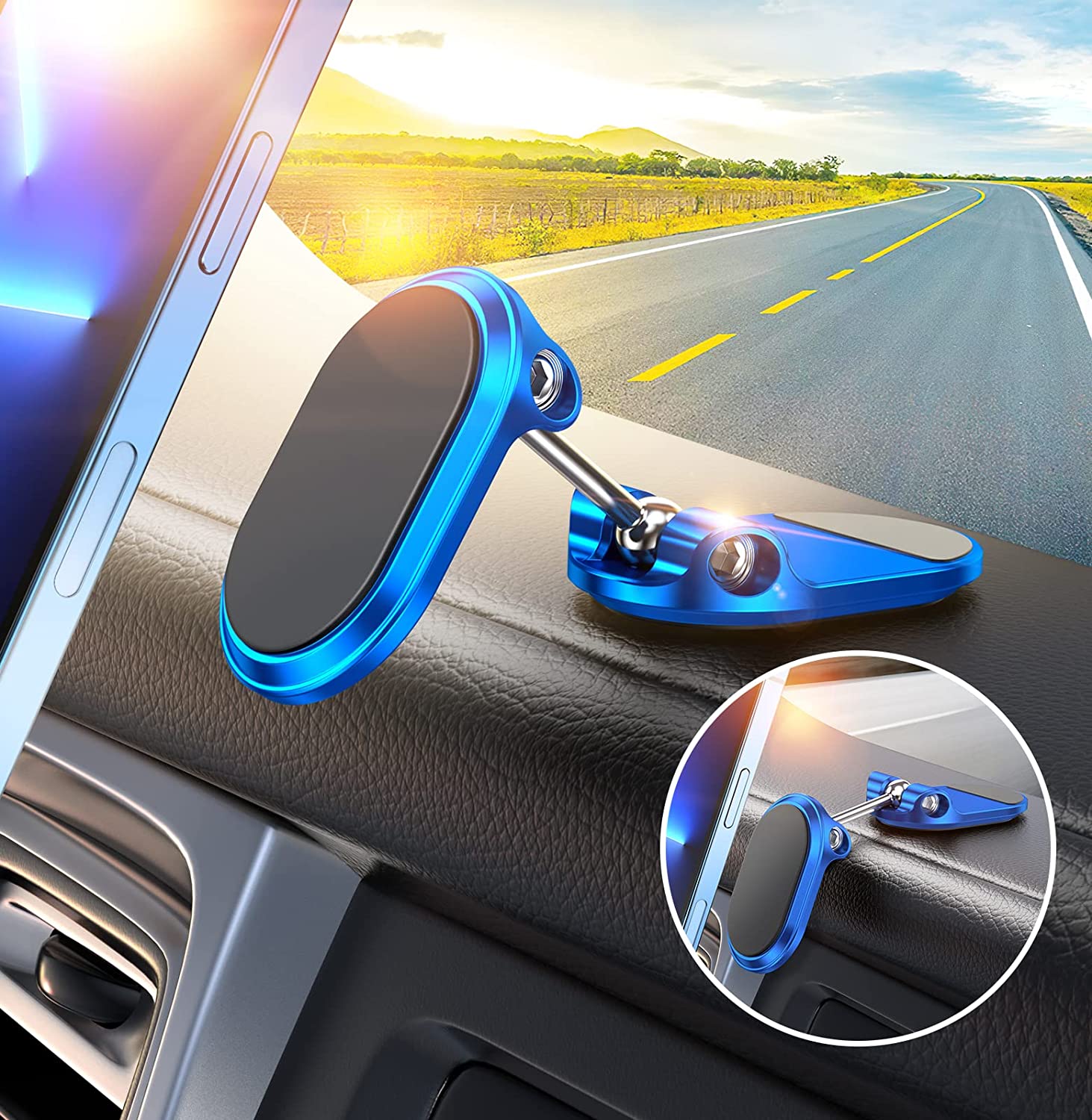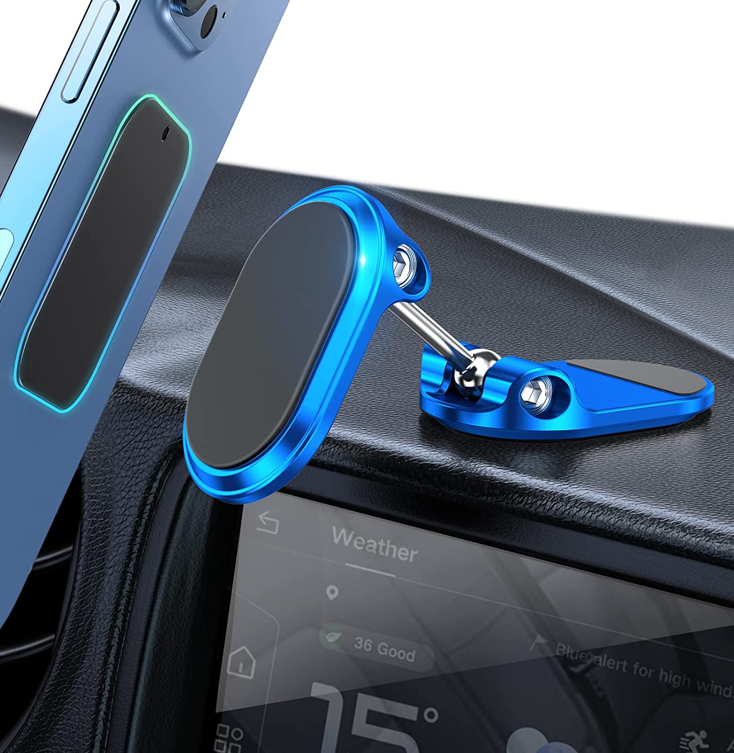 Dual 360 degree and easy to install: The magnetic car phone holder is a portable accessory. It does not block any view while driving. Equipped with double 360 degree adjustable connector ball, you can adjust the angle of the phone at will. Please find detailed installation diagrams on the product page, correct installation can avoid a lot of unnecessary trouble.
