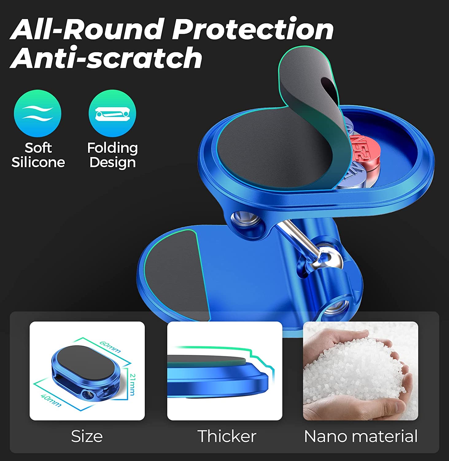 Magnetic suction and adsorption: 60 times N52 magnetic suction to hold your phone firmly (please be sure to use it together with the metal plate).3M high and low temperature resistant stickers, even at 40 degrees Celsius, will not fall off.