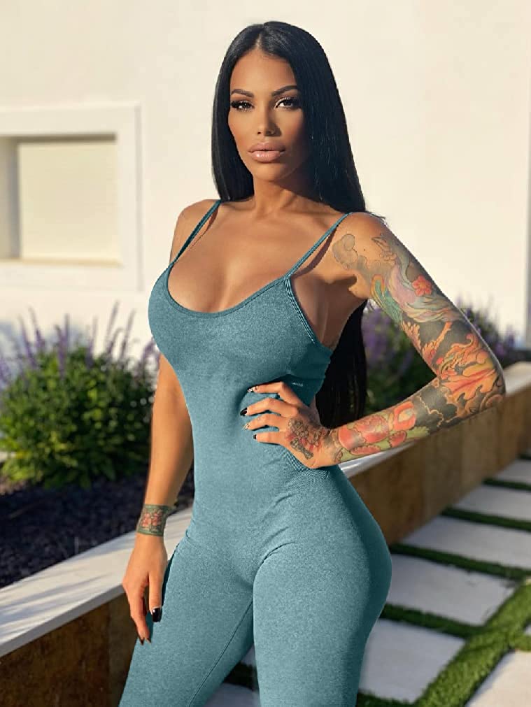 OQQ Womens Seamless Spaghetti Strap Leisure Yoga Workout Gym Leggings Padded Bra Jumpsuit