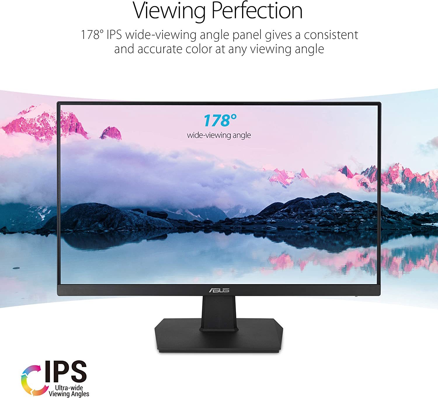 The frameless Asus VA27EHE eye Care monitor features a 27-inch IPS panel and 178° wide viewing angle For a vivid image quality with minimal color shifeet Eliminate tracing and ensure crisp and clear video playback with its featured Adaptive-Sync technology and refresh rate of up to 75Hz.