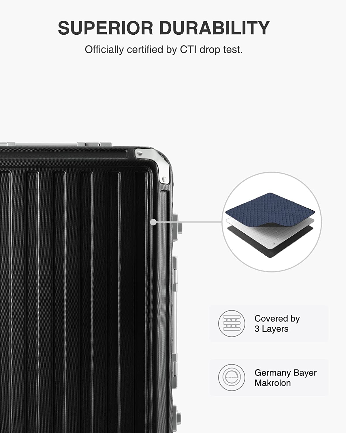 SMOOTH ROLLING - The aluminum frame luggage contains 8 smooth rolling silent wheels feature a directional control system. Feel the perfect maneuverability from LuggeX during the trip!