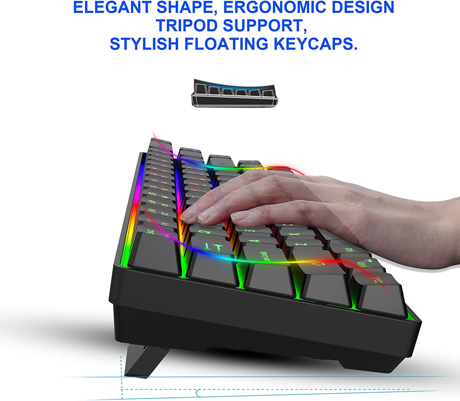 - 【NOTE】To be honest,this is a membrane keyboard but mechanical feel.Remember to press FN+W to convert to the arrow keys on the left(W、A、S、D).And it is 68 keys small keyboard【(L) 311mm * (W)102mm x (H)38mm】. Please judge the size before placing an order.For any other problem, please feel free to contact us. Your satisfaction and happiness will be our motivation and direction to pursue continuous product upgrades!