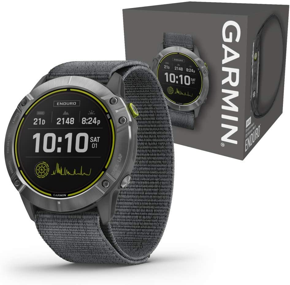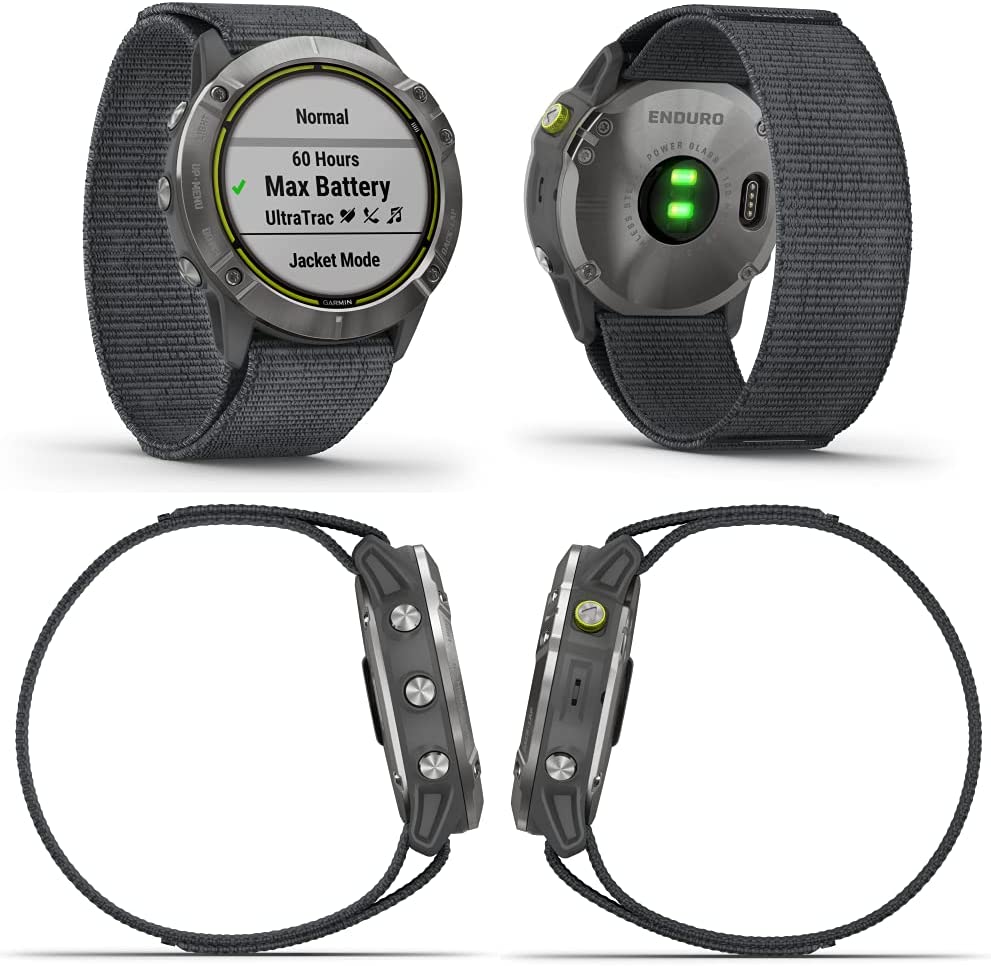 Wearable4U Garmin Enduro Ultraperformance Multisport GPS Smartwatch, Steel with Gray UltraFit Nylon Strap, Solar Charged Power Pack Bundle