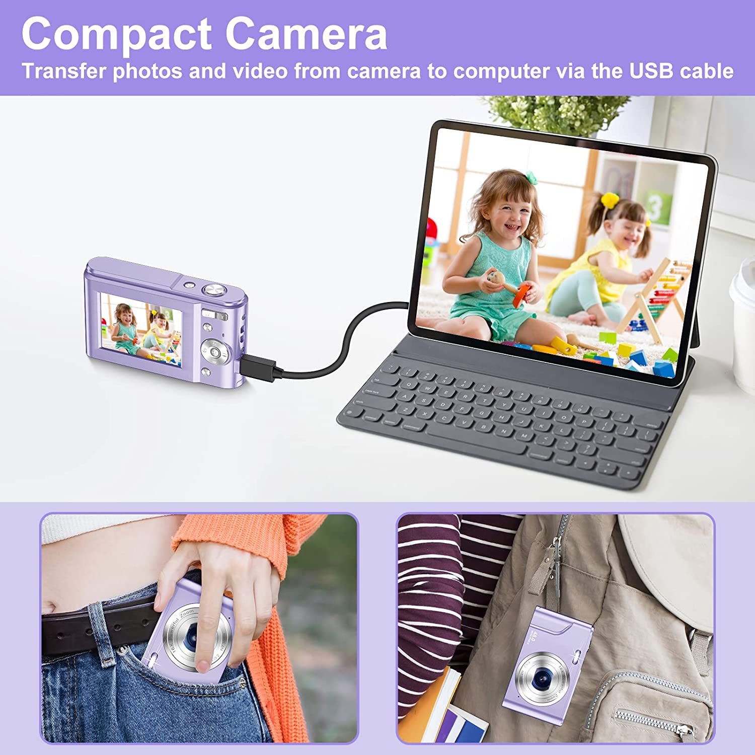 - 【Upgraded Autofocus Digital Camera】 New released autofocus digital camera for teens, when you press the shooting button halfway, it will catch the focus automatically, and after the focus frame on the screen turn green you need press shooting button fully to get vivid macro images, concentrate more on capturing the momentary scene of the subject, this small digital camera is easy to operate to meet the needs of kids teenagers students elderly.