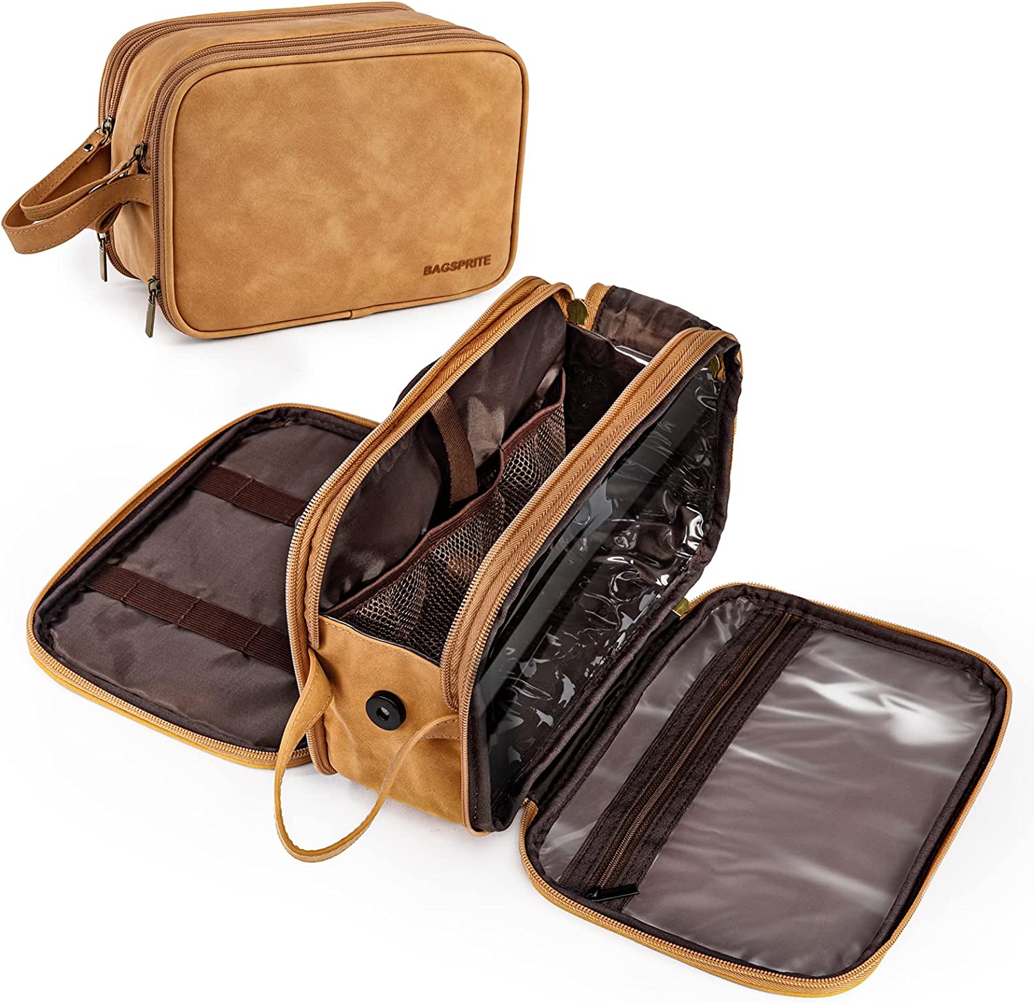 BAGSPRITE Toiletry Bag for Men, Travel Bag for Toiletries, Mens Toiletry Bag Shaving Dopp Kit Organizer, Large Water-resistant Travel Bathroom Bag for Traveling, Black/Brown
