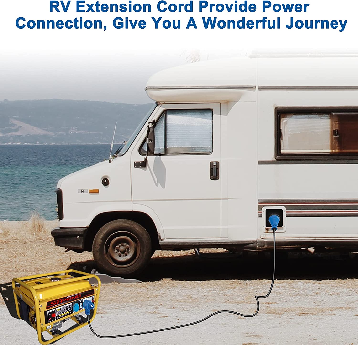 - ⚡【GRIP HANDLE】Equipped with an easy grip handle to make plugging and unplugging this cable easier and safer for you. The RV power extension cord is in black cable blue handle