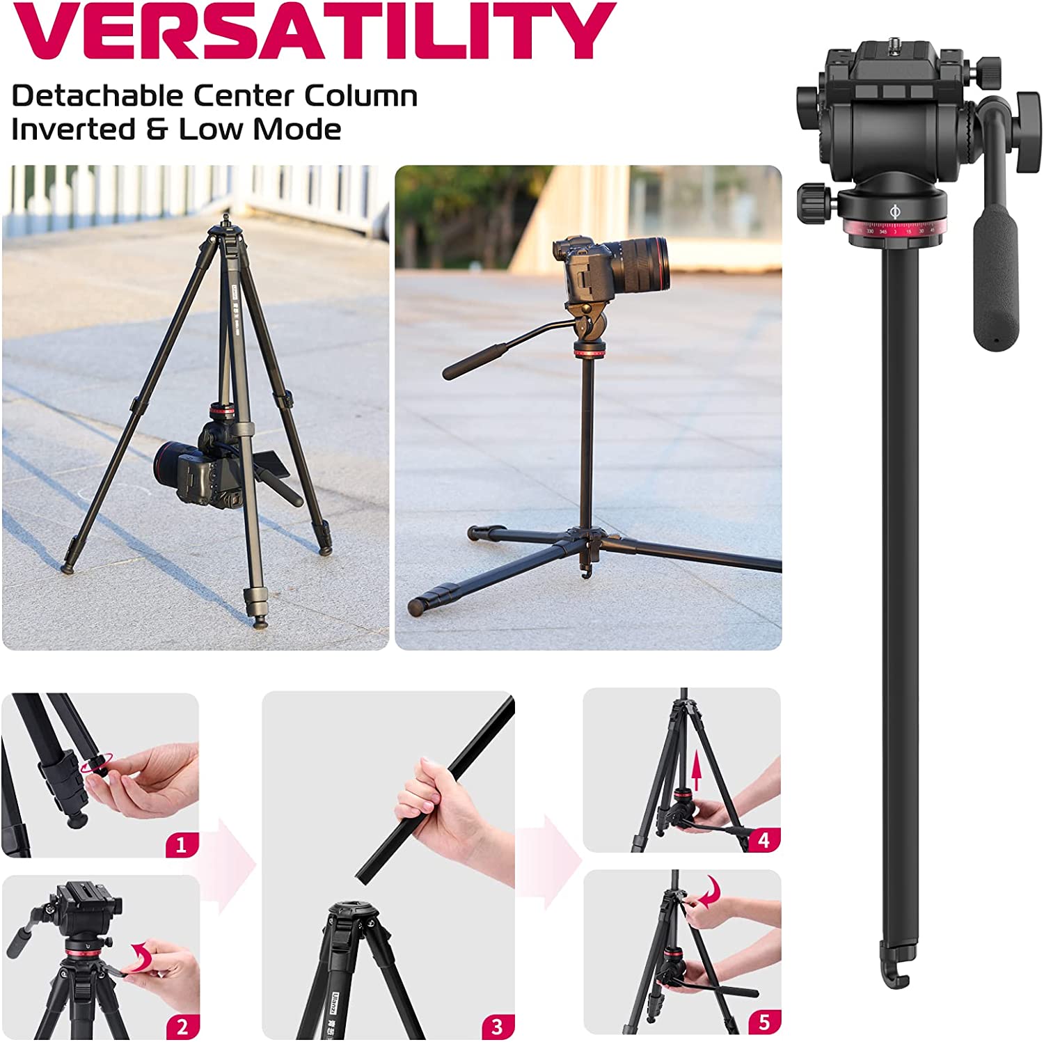 Detachable Panorama Head and Handle: Easy to switch left and right