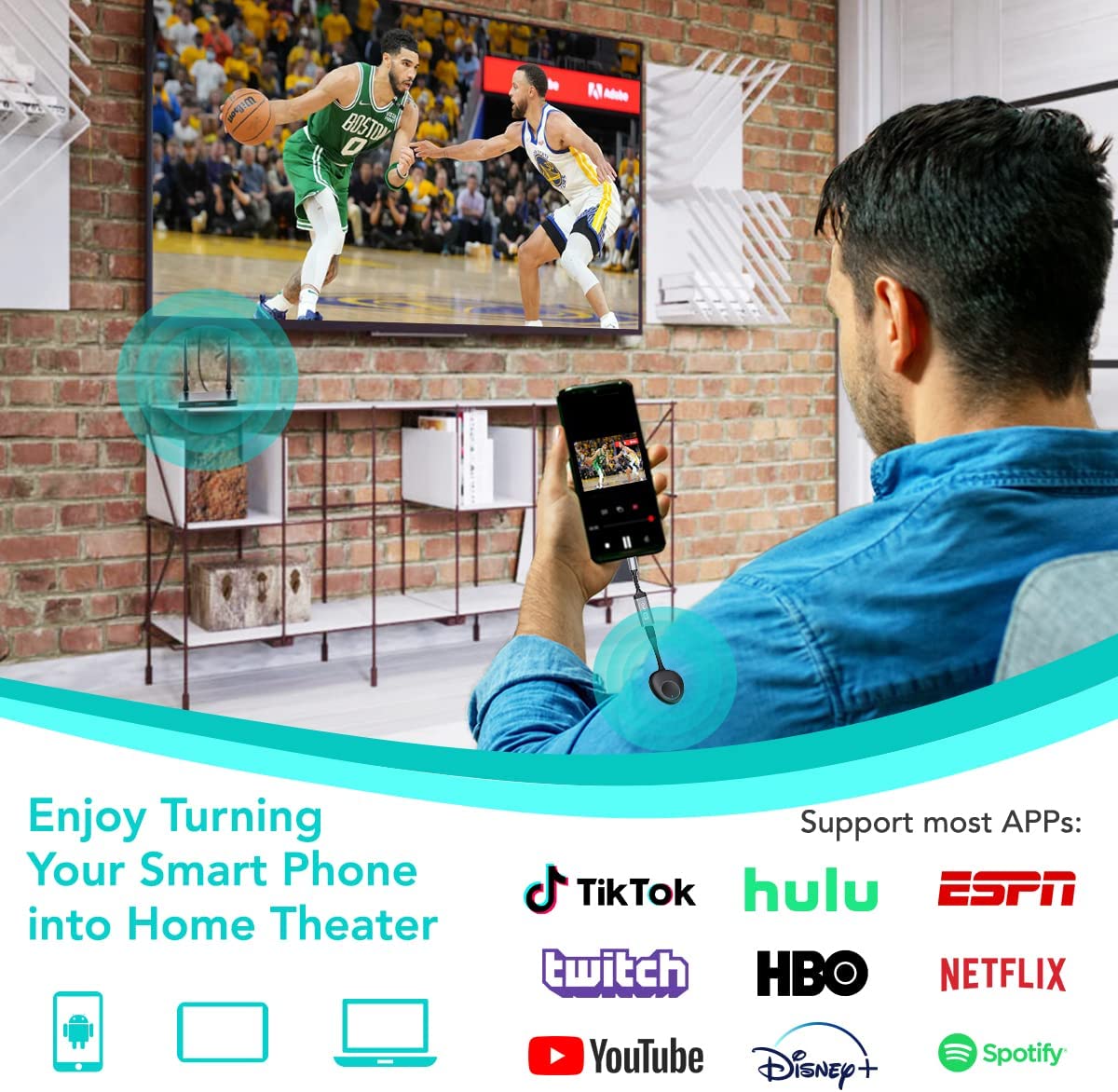 ?4K@60Hz⚽TURN YOUR PHONE INTO THEATER: This wireless HDMI dongle has 720p,1080p, and 4K HD resolutions. Smartphone/Mac is connected to a USB-C HDMI adapter, which can cast screen encrypted apps without barriers, such as Netflix, Prime Video, Sky Go, BT Sport, DIRECTV, HULU, Comcast TV, HBO, etc.