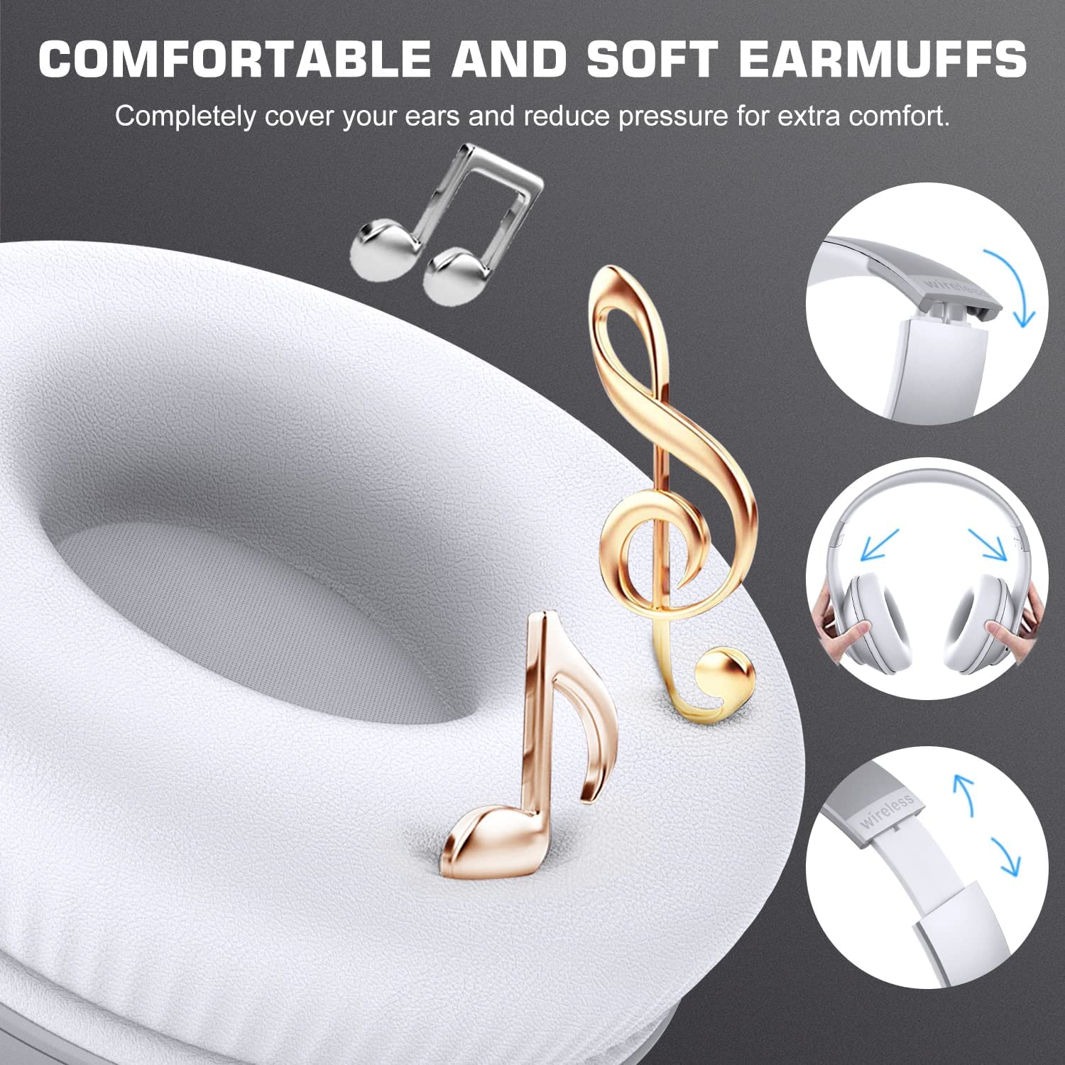 【SEAMLESS CONNECTION & BUILT-IN MIC】Adopt advanced Bluetooth 5.0 technology, you just open the power button and the headphones wireless will be in ready to pair mode, and offer more stable transmission speed, lower latency and better audio output, which give you wonderful music enjoyment. Built-in Mic of our over ear Bluetooth enables a hands-free clear phone communication, which like talking face to face with your friends.